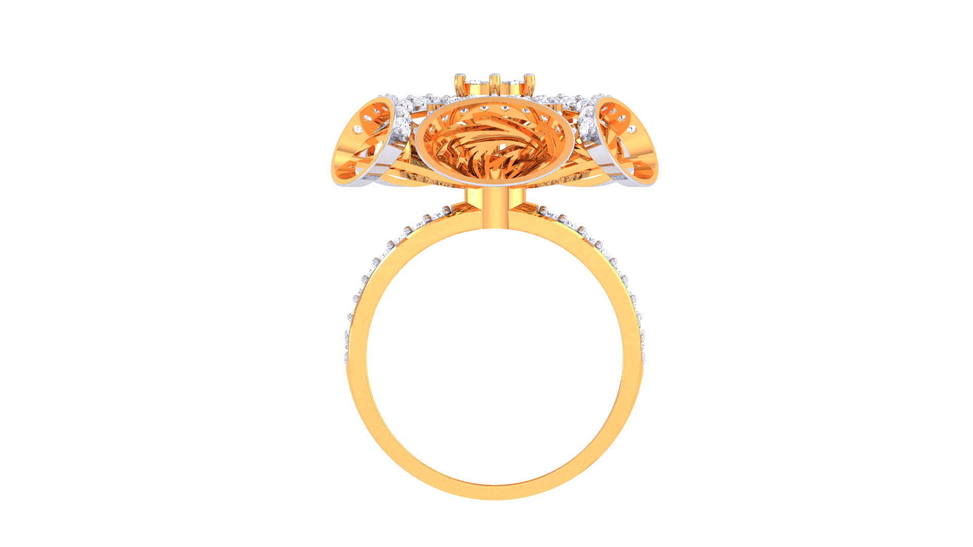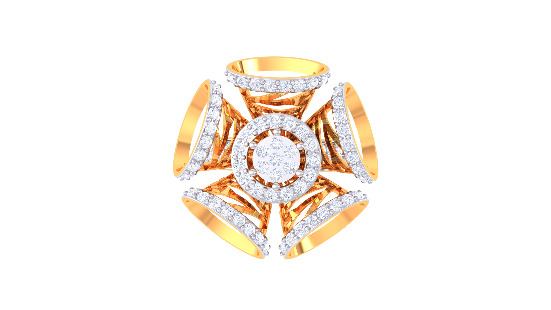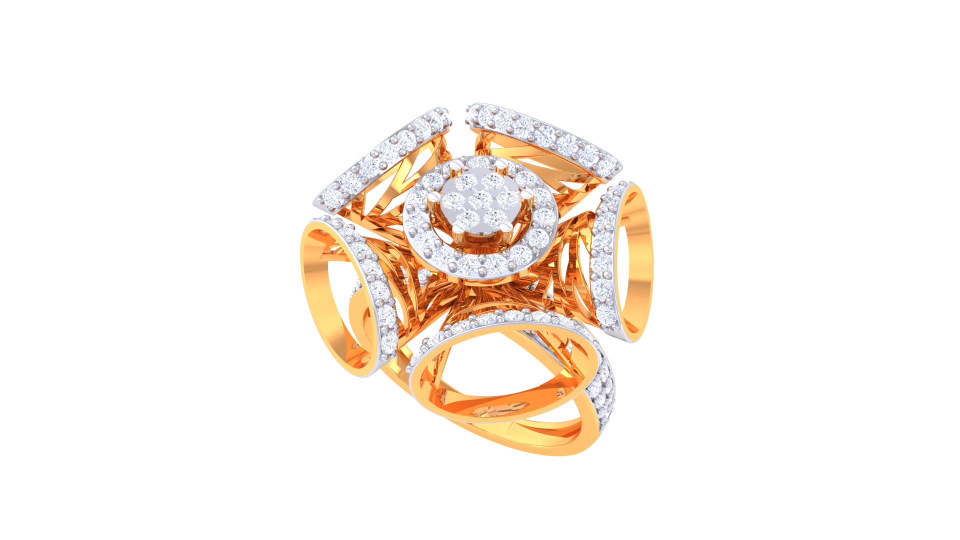 Éclat Centrale Majesté – 0.95ct Diamond Gold Ring commands attention with its architectural round diamond cluster, radiating from a bold, sculptural gold structure. Handcrafted with 7.59 grams of 18kt gold and holding a total of 0.95 carats in sparkling round diamonds, this piece embodies modern luxury and statement design.