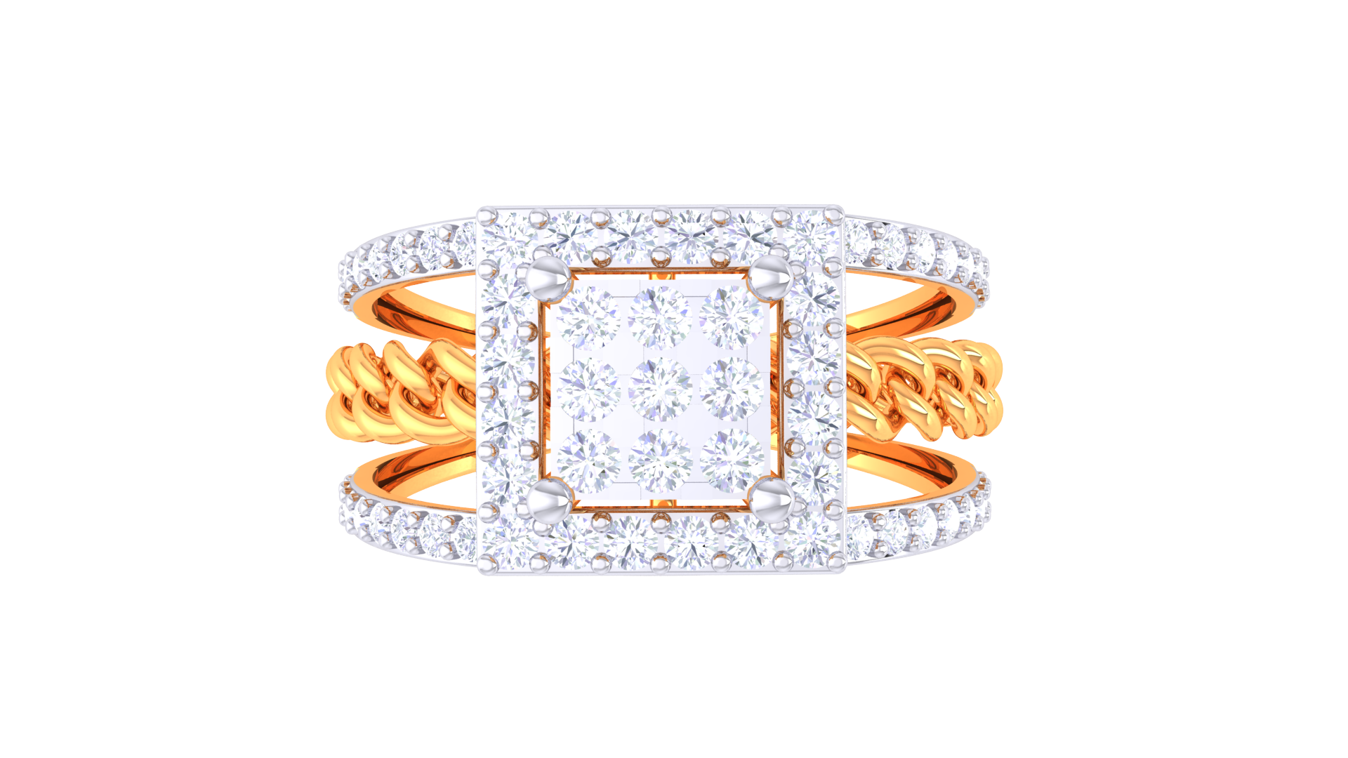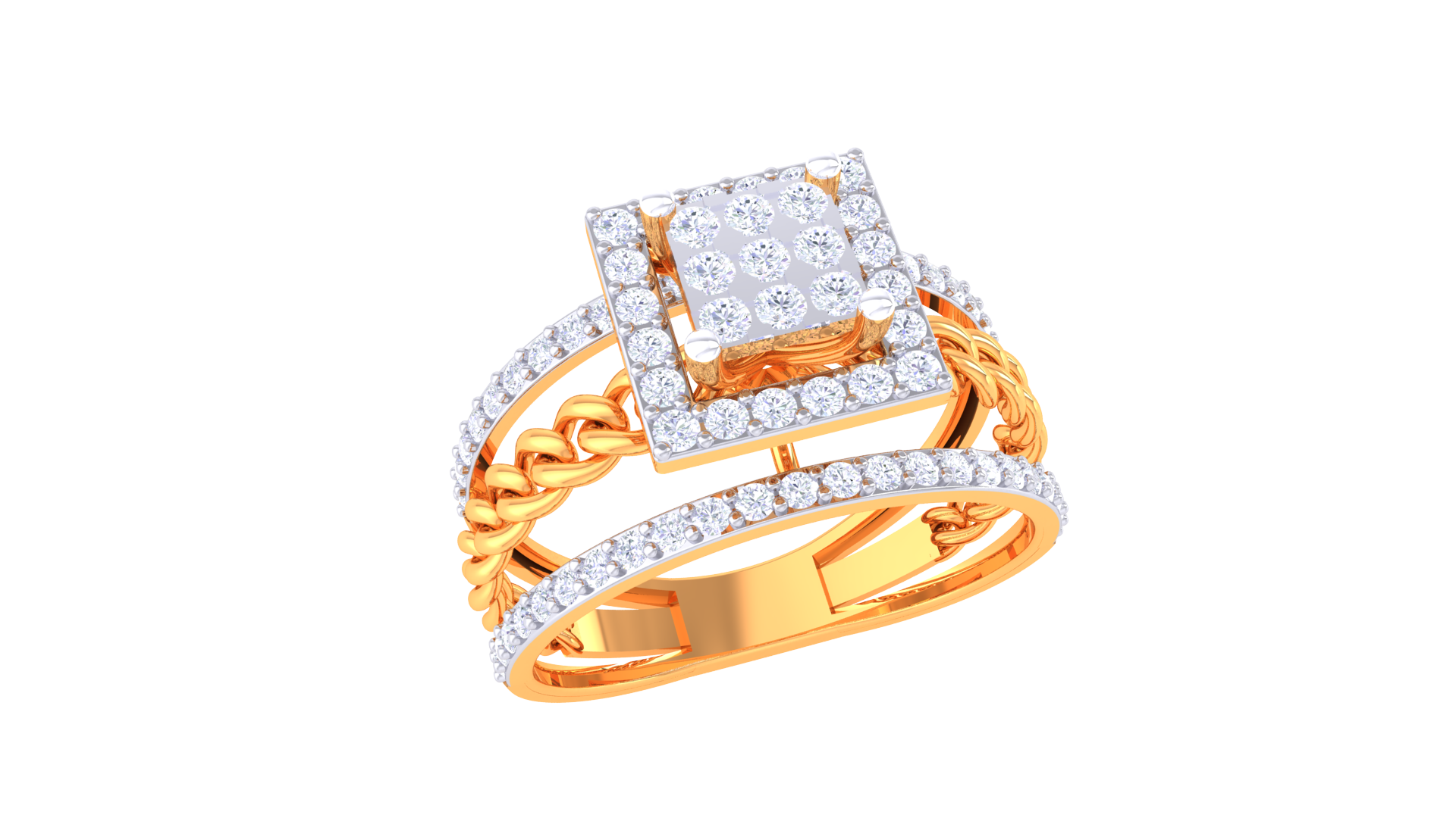 Lumière Rayon Square – 0.3ct Diamond Gold Ring shines with a princess-cut diamond cluster, framed by pavé brilliance and crafted in 4.5 grams of 18kt gold for vibrant geometric allure.