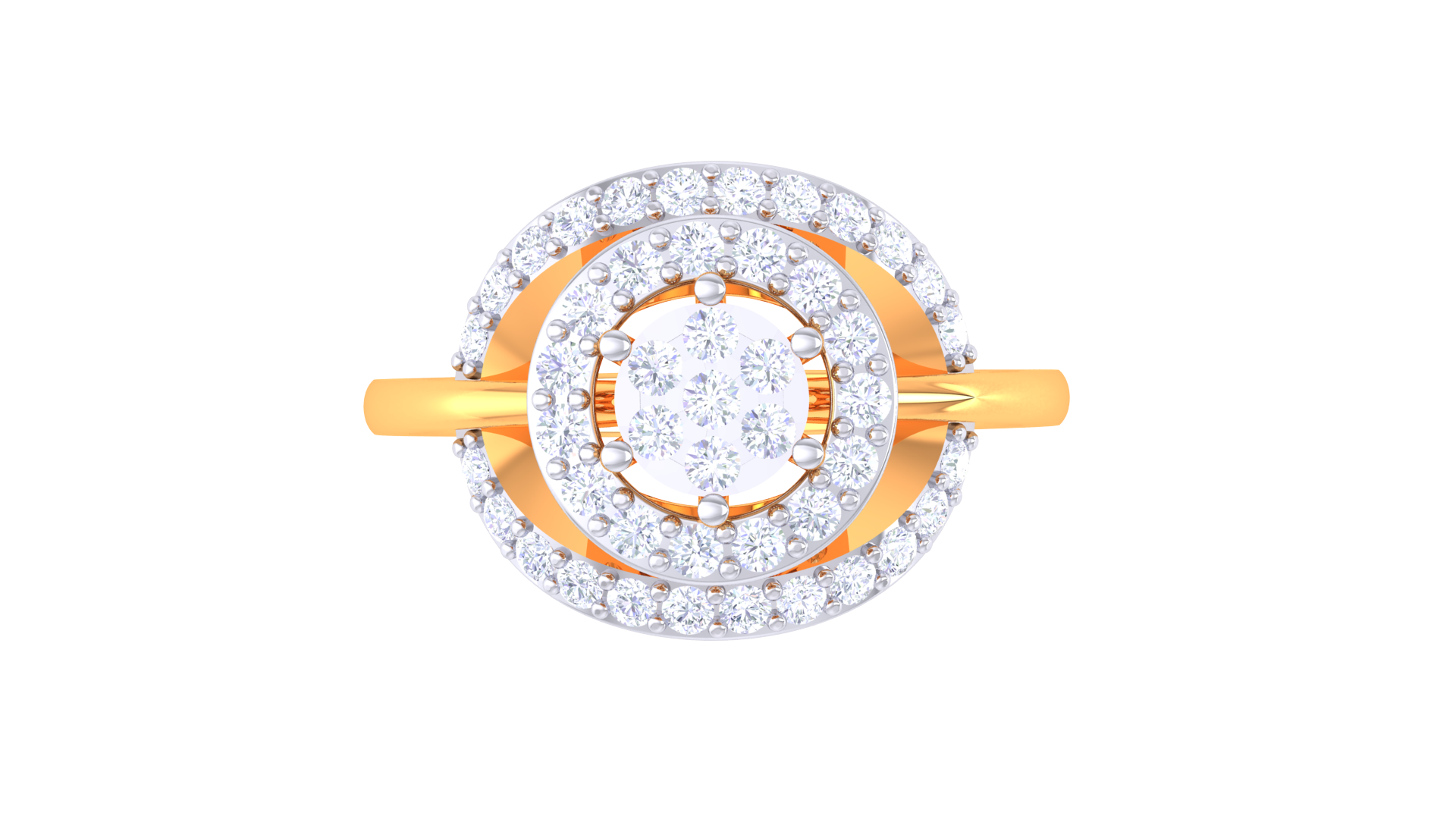 Lumière Halo Serenité – 0.47ct Diamond Gold Ring features a tranquil fusion of shimmer and elegance, with radiant round diamonds totaling 0.47 carats encircled by soft layered halos. Crafted in 18kt gold and weighing 4.09 grams, its graceful silhouette captures the peace and dazzle of serene luxury.