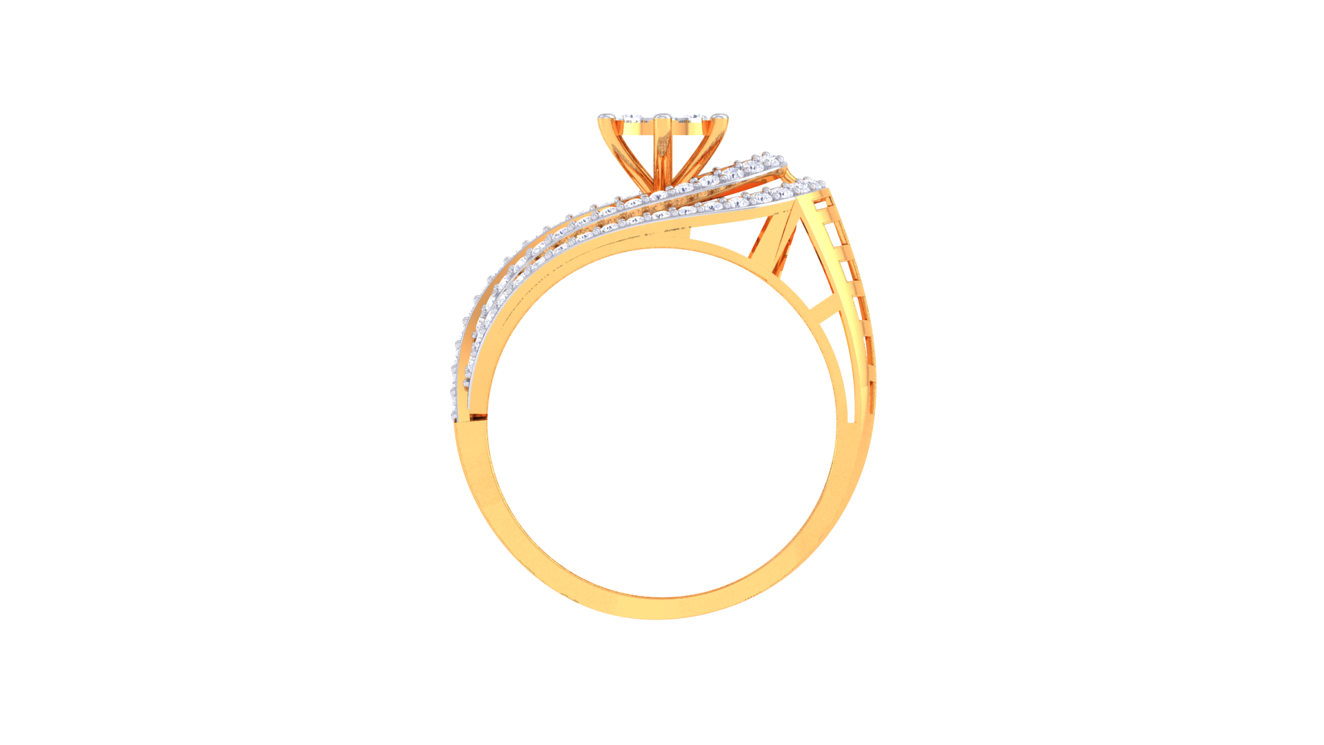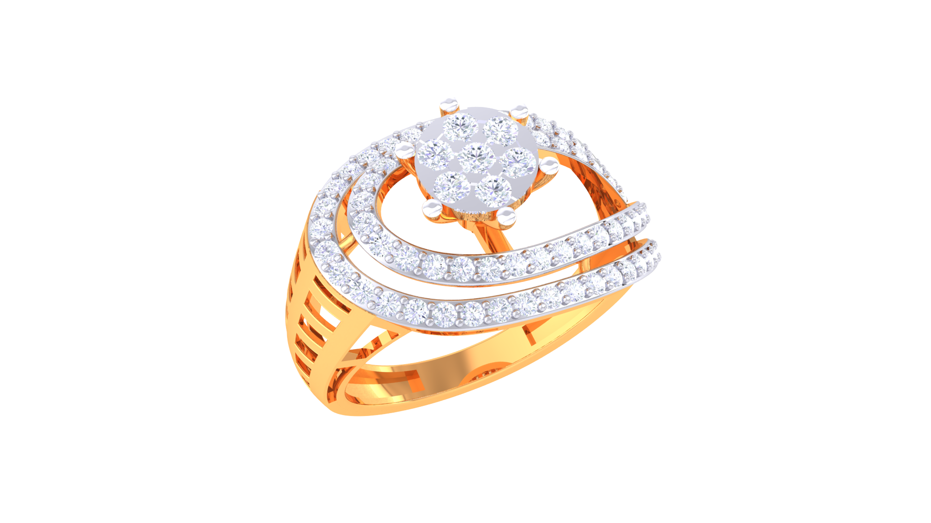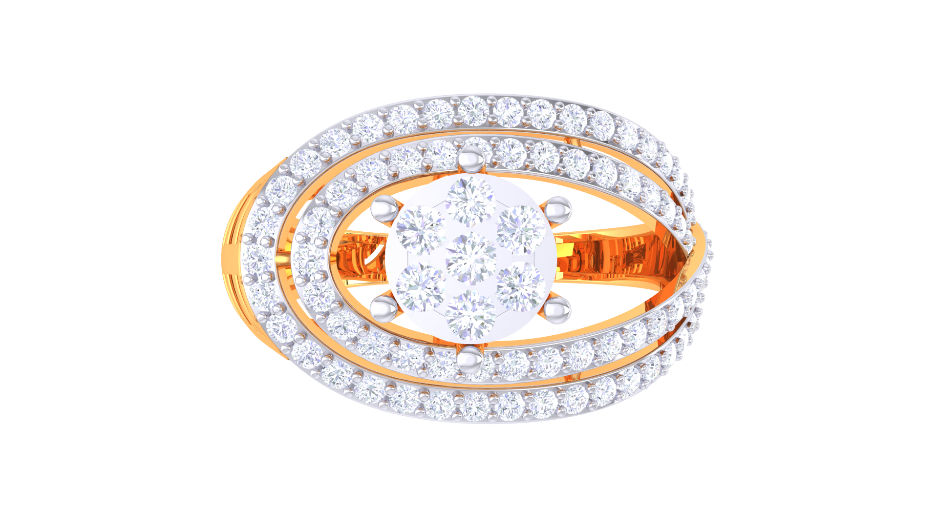Lumière Halo Écliptique – 0.61ct Diamond Gold Ring glows with celestial brilliance, featuring a radiant 0.61 carat round diamond at its heart encircled by elliptical pavé halos for mesmerizing shimmer. Sculpted from 4.35 grams of 18kt gold, this modern design amplifies light with every curve, offering an extraordinary play of brilliance and refined glamour.