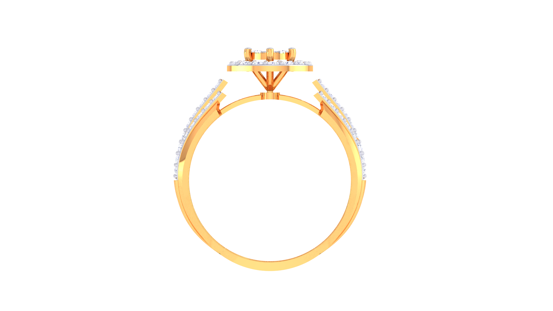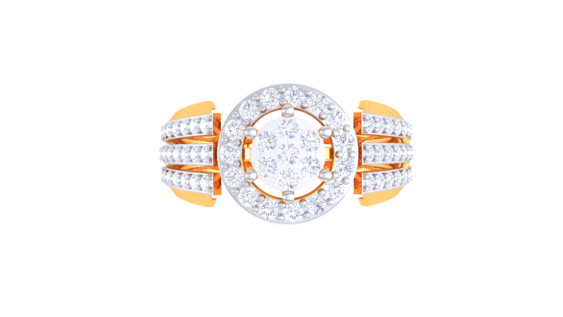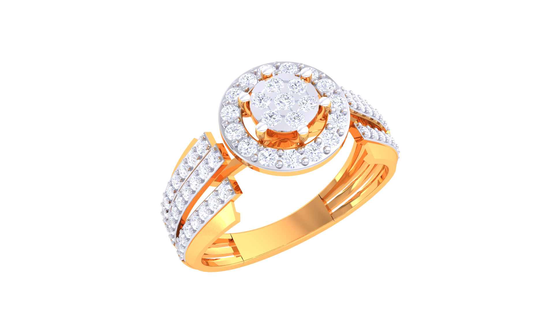 Lumière Radiant Contour – 0.31ct Diamond Gold Ring showcases a luminous 0.31ct round diamond encircled by layered pavé halos and sleek gold shanks for exceptional brilliance. Sculpted from 5.36 grams of 18kt gold, this design delivers refined light-play and elegant sparkle in a graceful, modern silhouette.
