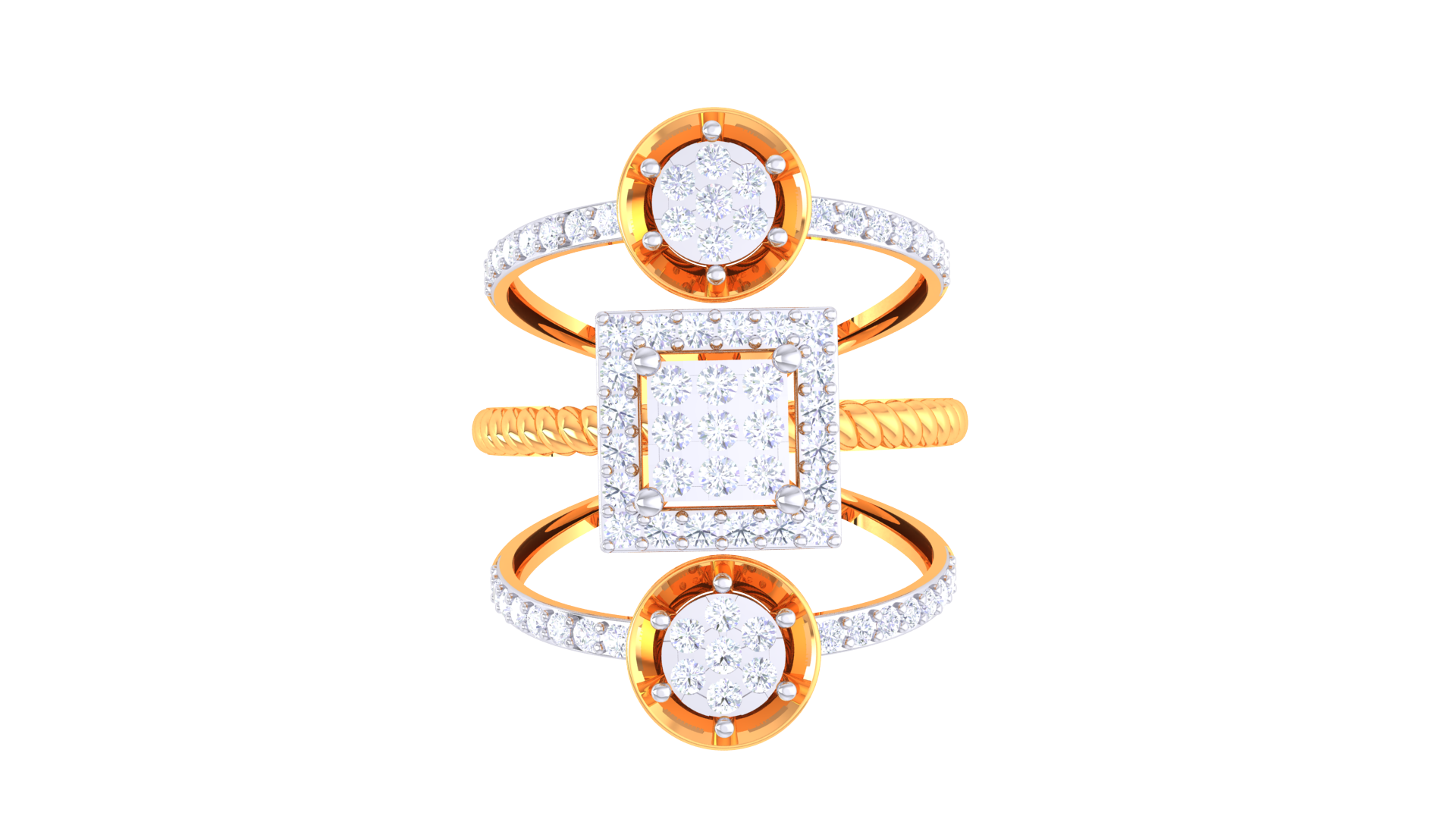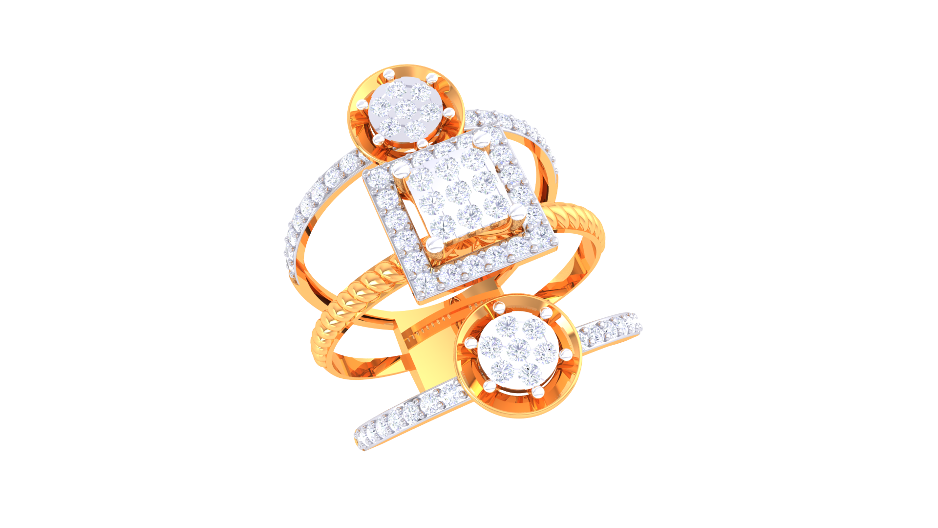Trilune Colonne Céleste – 0.65ct Diamond Gold Ring reveals a spectacular column of one square and two round diamonds totaling 0.65ct, aligned in vertical harmony for a modern celestial look. Sculpted from 6.5 grams of 18kt gold, this ring elegantly blends geometric and astral artistry, ensuring captivating brilliance from every angle.