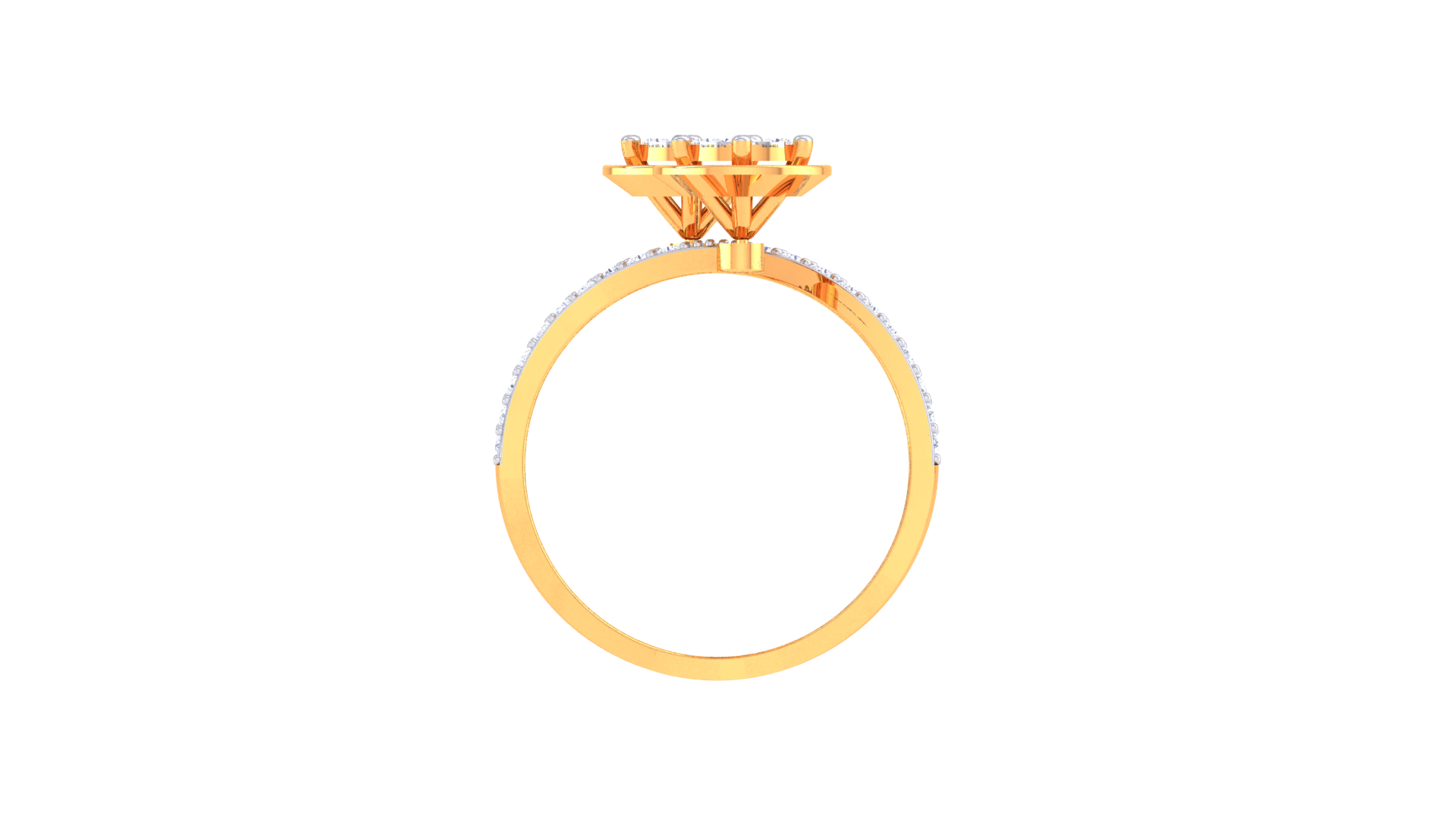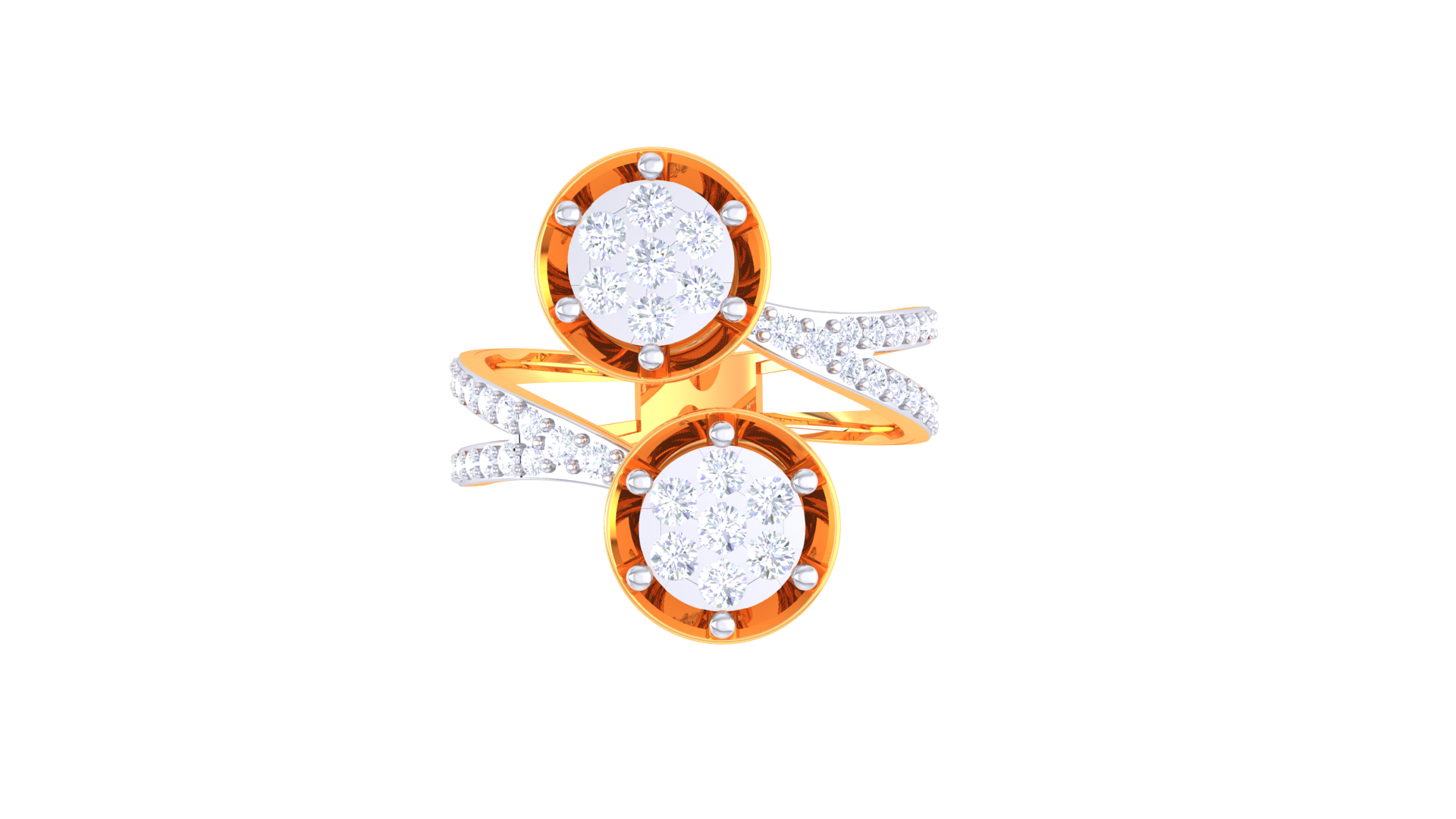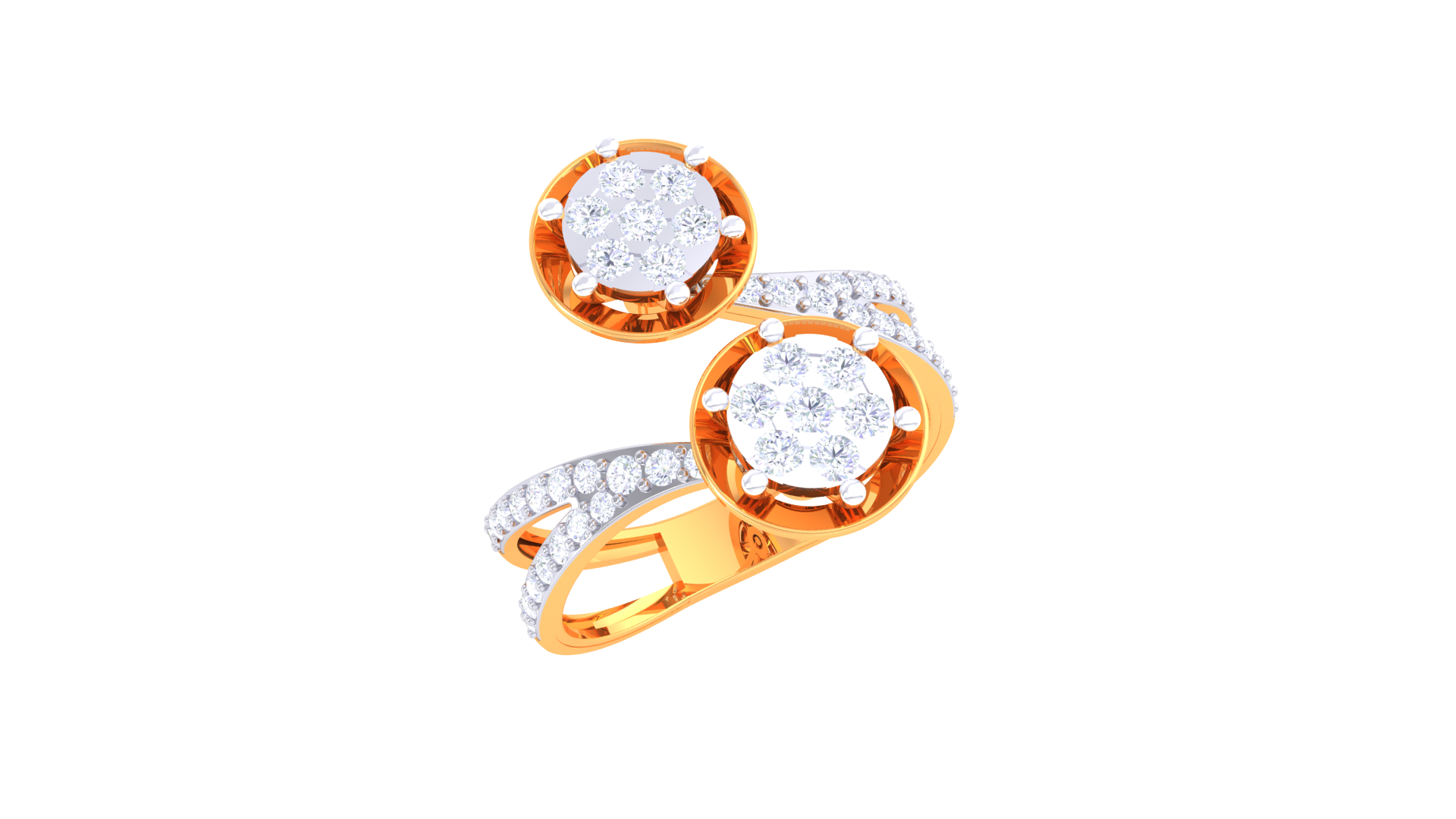 Éclat Duo Sphère – 0.55ct Diamond Gold Ring presents two luminous round diamonds encircled by micro-pavé, expressed in a contemporary split-band silhouette. Cast in 4.59 grams of 18kt gold and totaling 0.55ct, this ring features a bold dual form and modern artistry for standout appeal.
