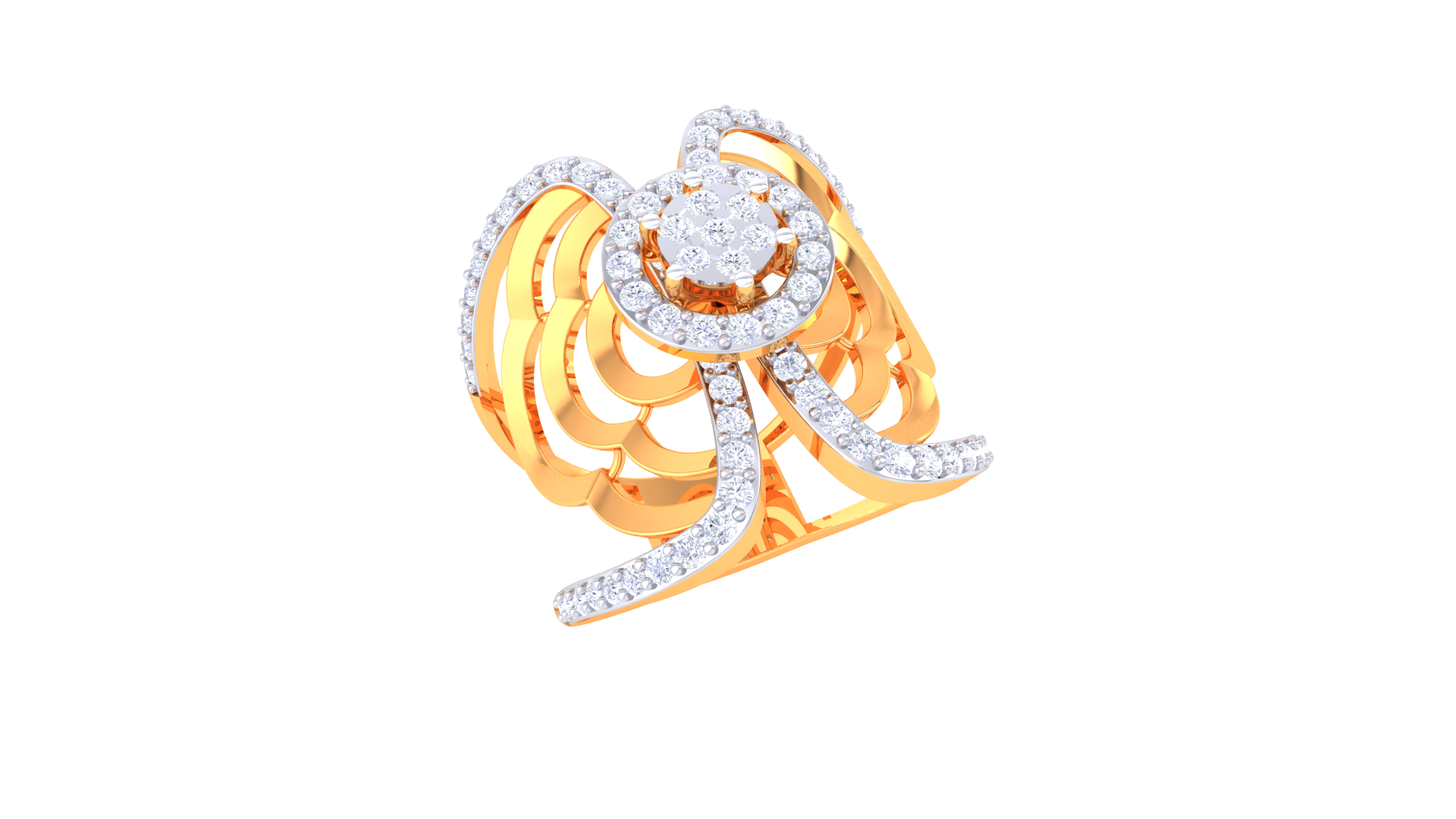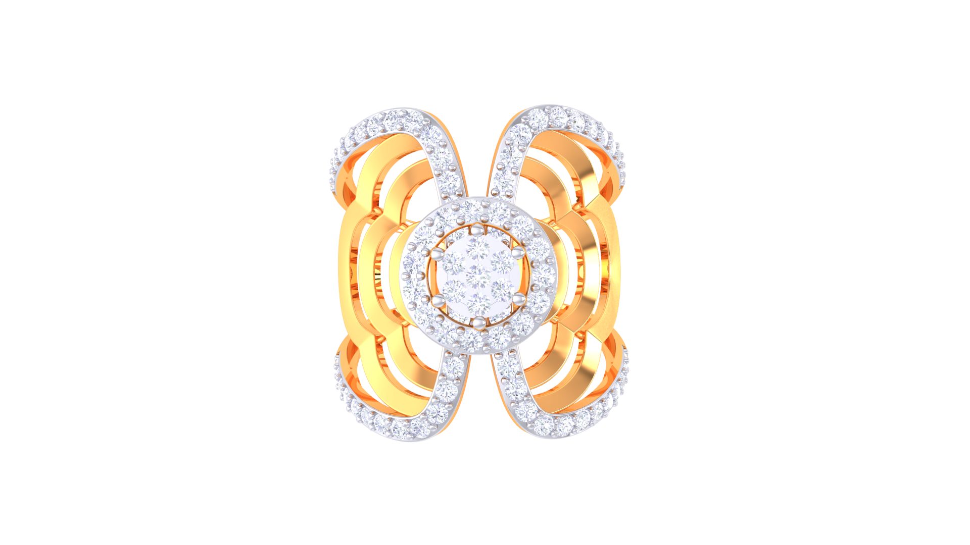 Éclat Papillon Radiance – 0.75ct Diamond Gold Ring presents a dazzling round 0.75ct diamond embraced by sculptural pavé wings for a dramatic, butterfly-inspired look. Crafted in 6.85 grams of 18kt gold, its artistic curves and radiant center capture bold elegance and statement artistry.