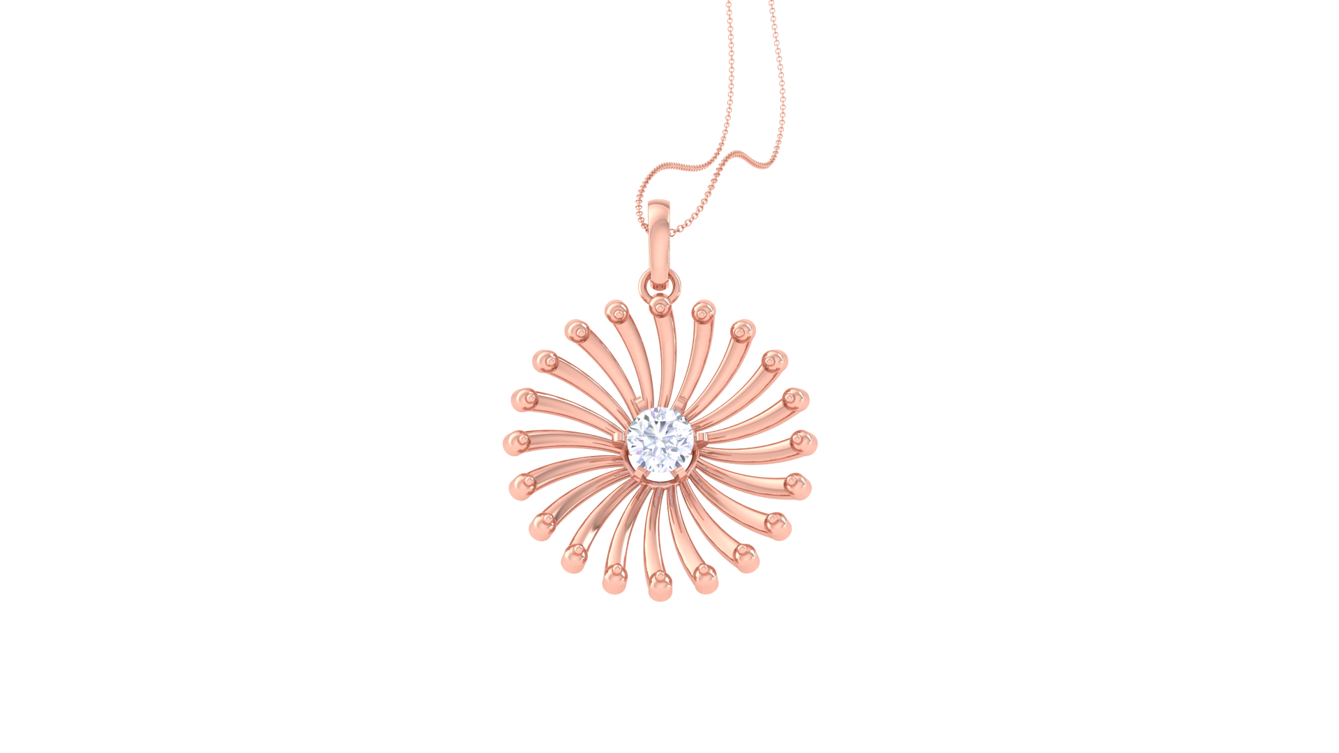 Each spoke ends in a delicate gold bead, enhancing the pendant’s sun-inspired silhouette.