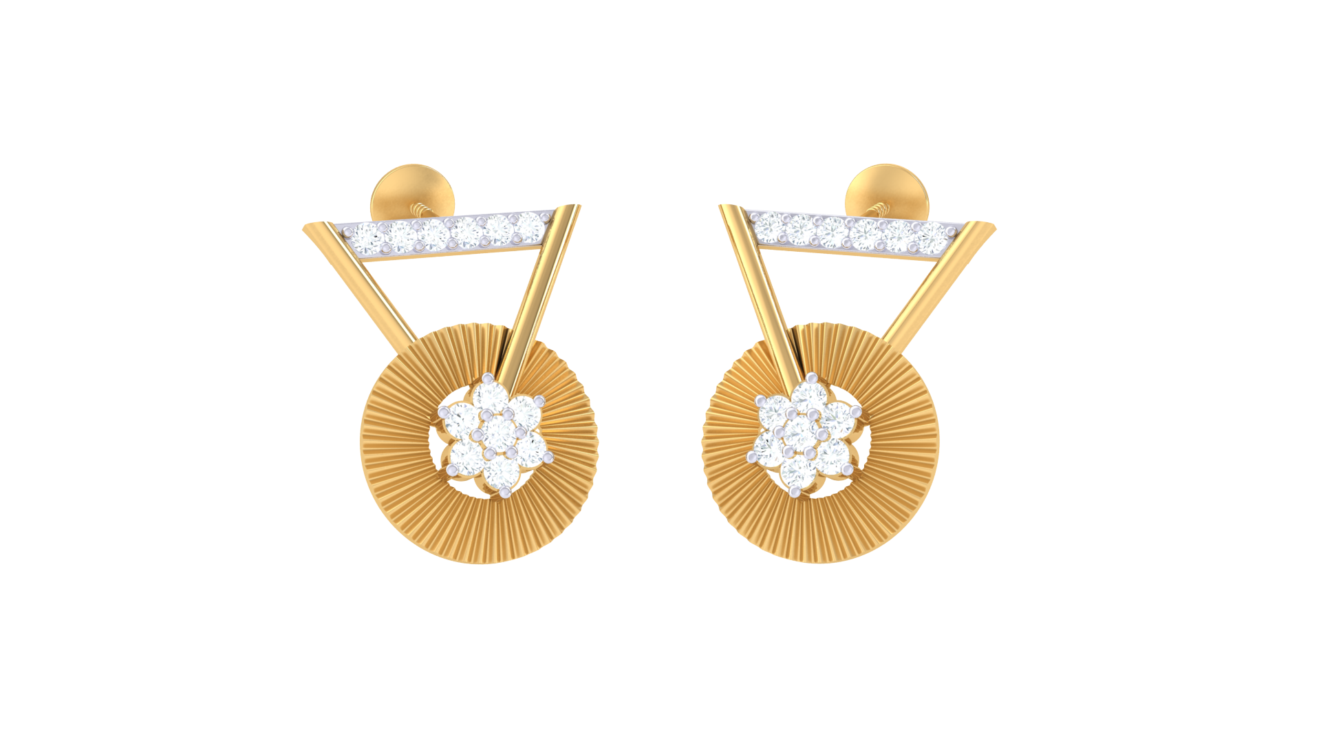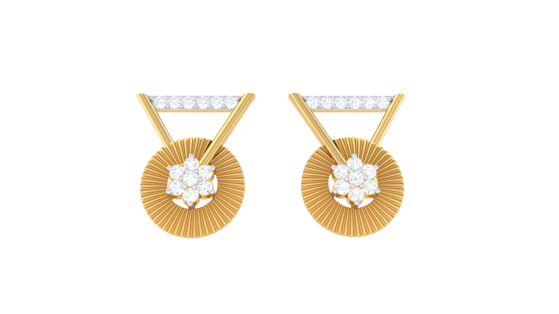 Floral Crest Diamond Stud Earrings In Gold – 0.24 Ct
