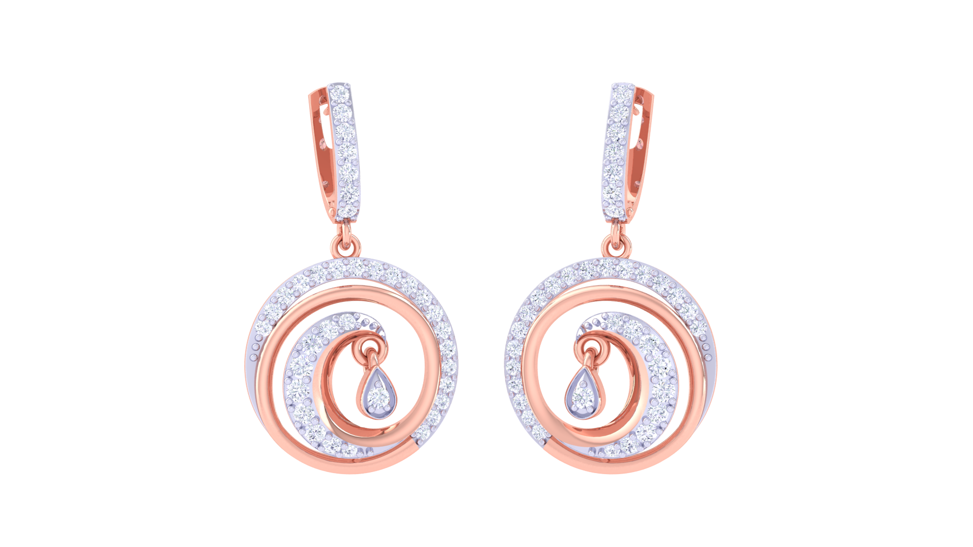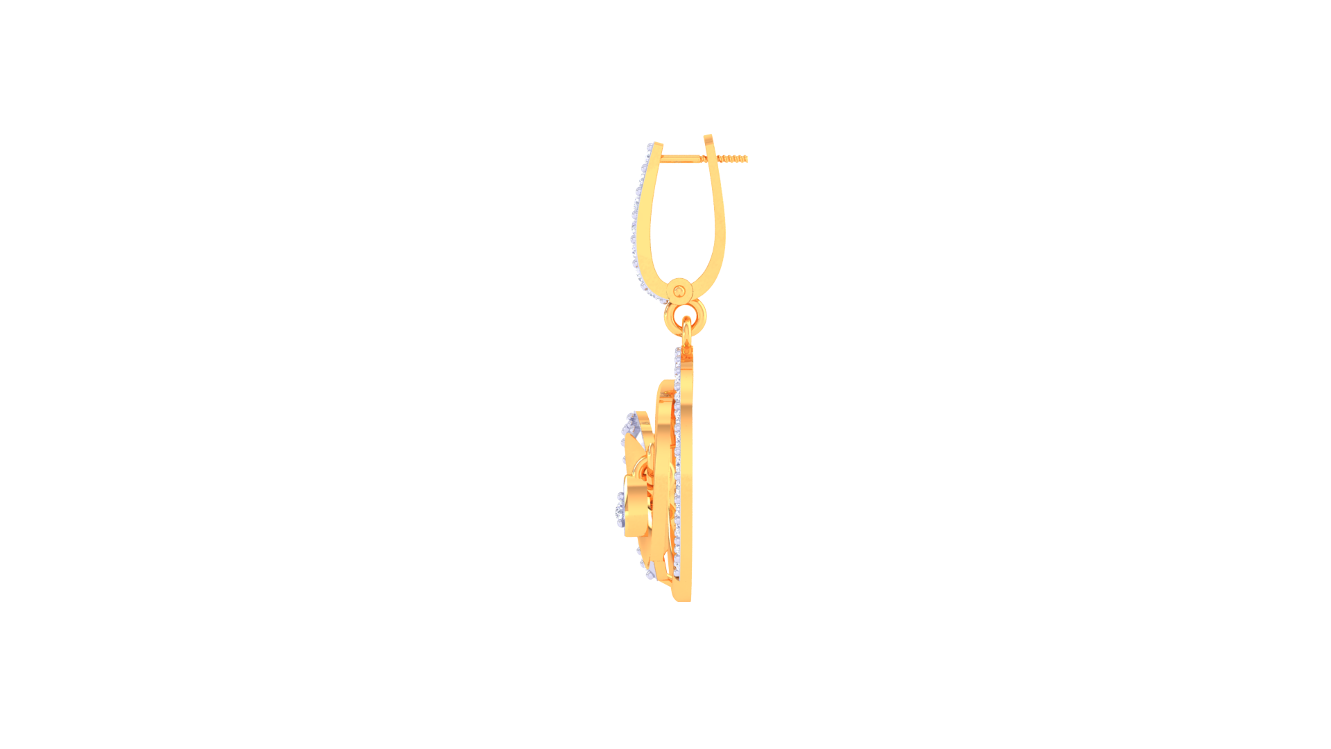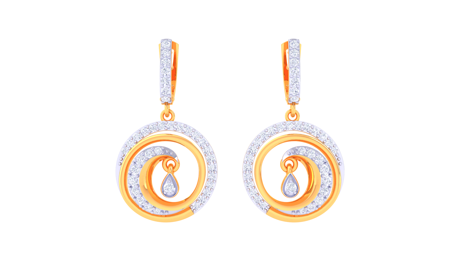 Crafted in 18K dual-tone gold weighing 4.28 grams, these exquisite drop earrings blend sculptural elegance with radiant sparkle.