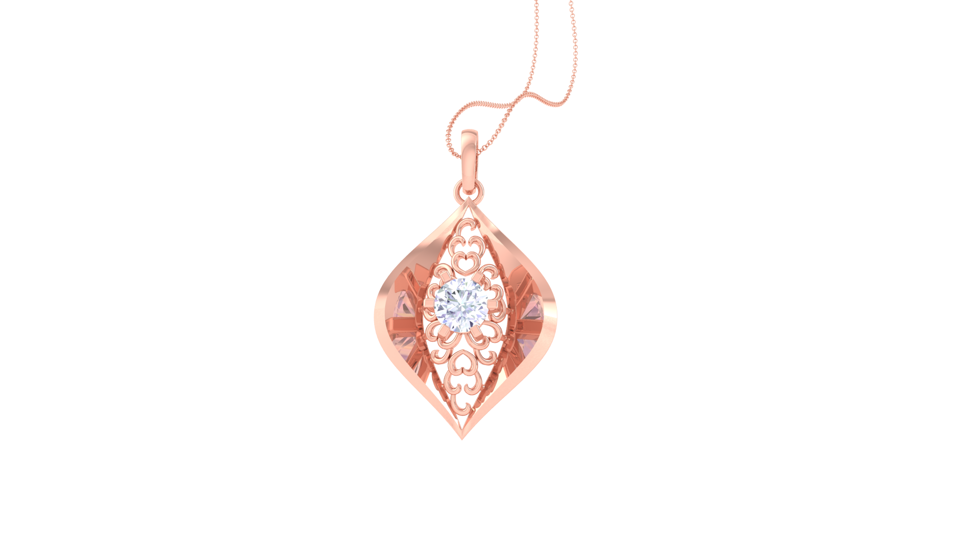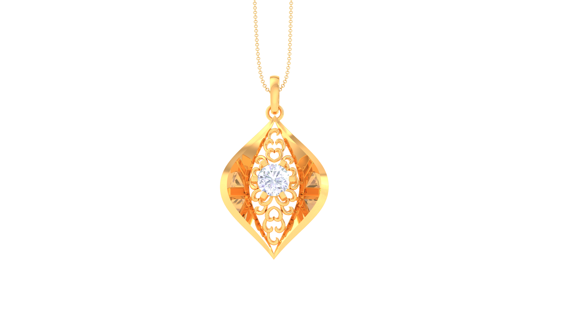A captivating fusion of elegance and artistry, this pendant showcases a brilliant 0.59 carat round-cut diamond nestled at the heart of a stylized gold silhouette.
