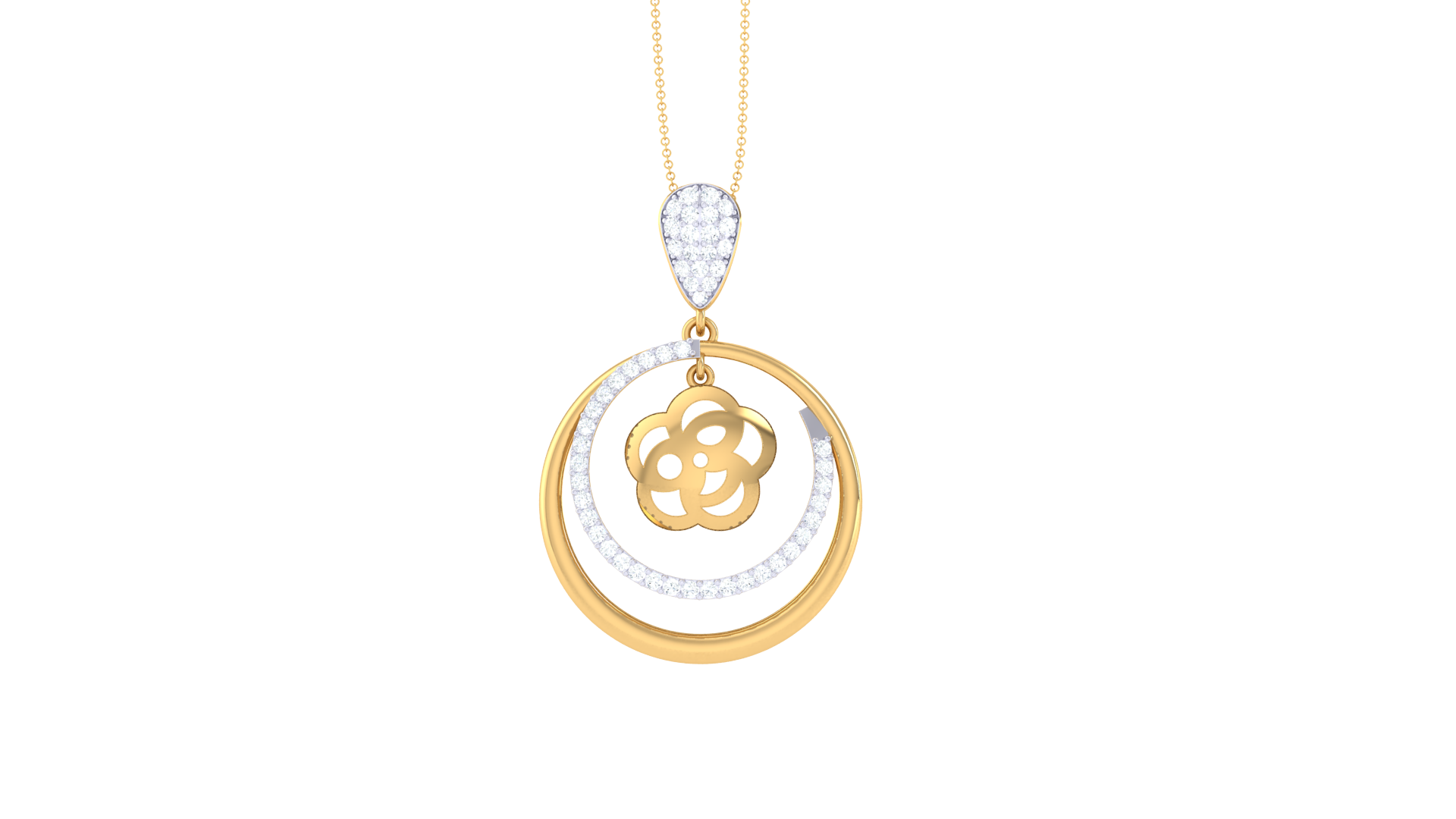 Concentric Floral Pendant In Gold – 0.74 Ct Dazzling Diamonds