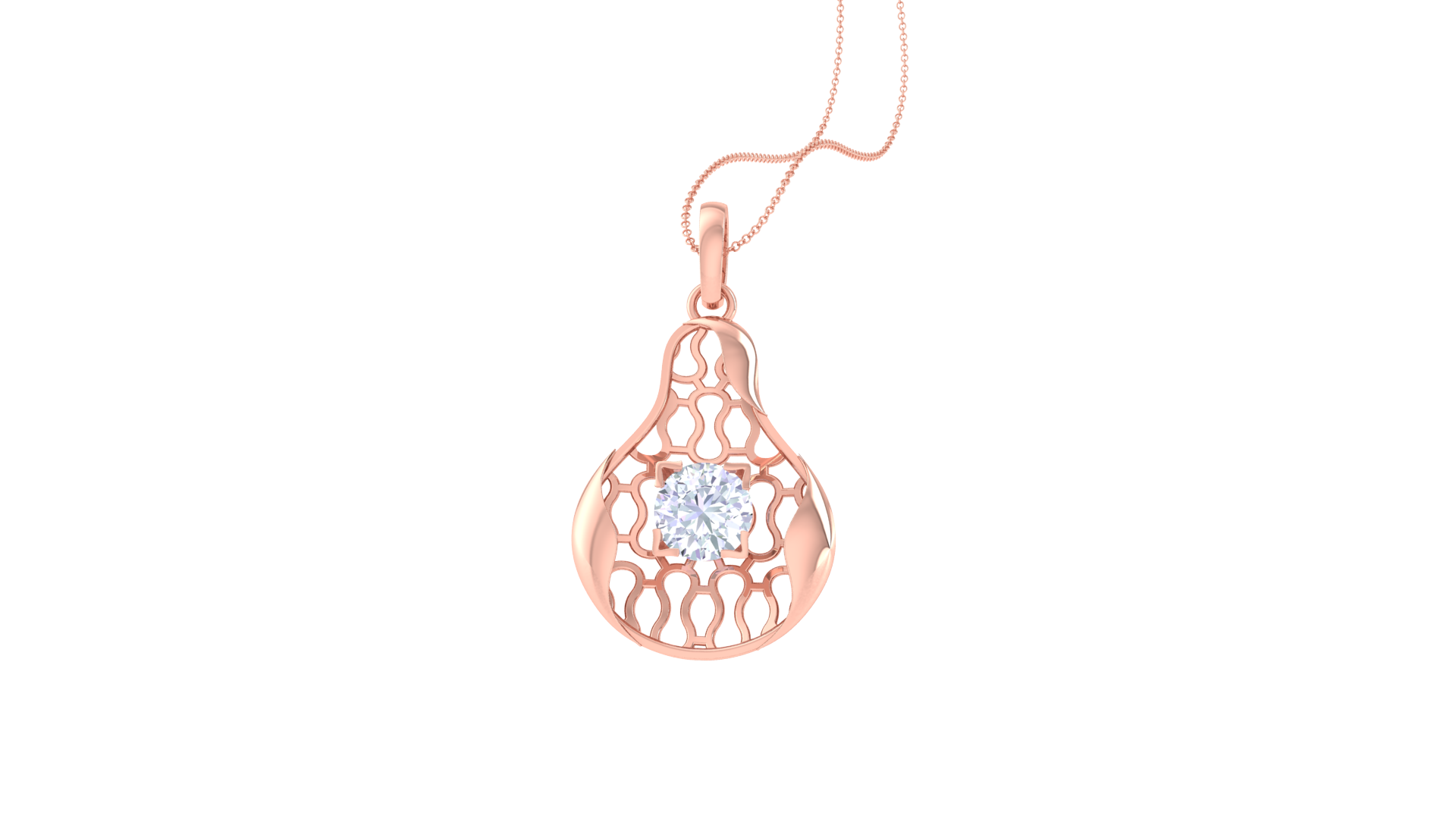 Filigree Teardrop Pendant In Gold - 0.59 Ct Round Cut Diamond Centerpiece