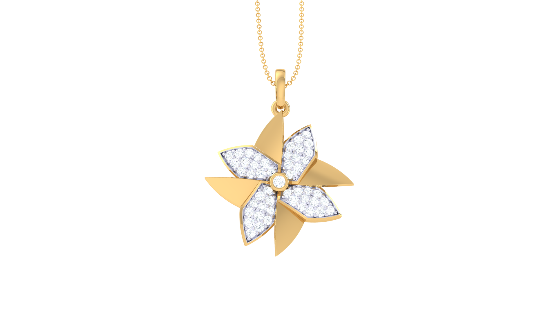 Three petals shimmer with 0.34 carats of brilliant-cut diamonds, while the remaining gold petals offer a warm contrast.
