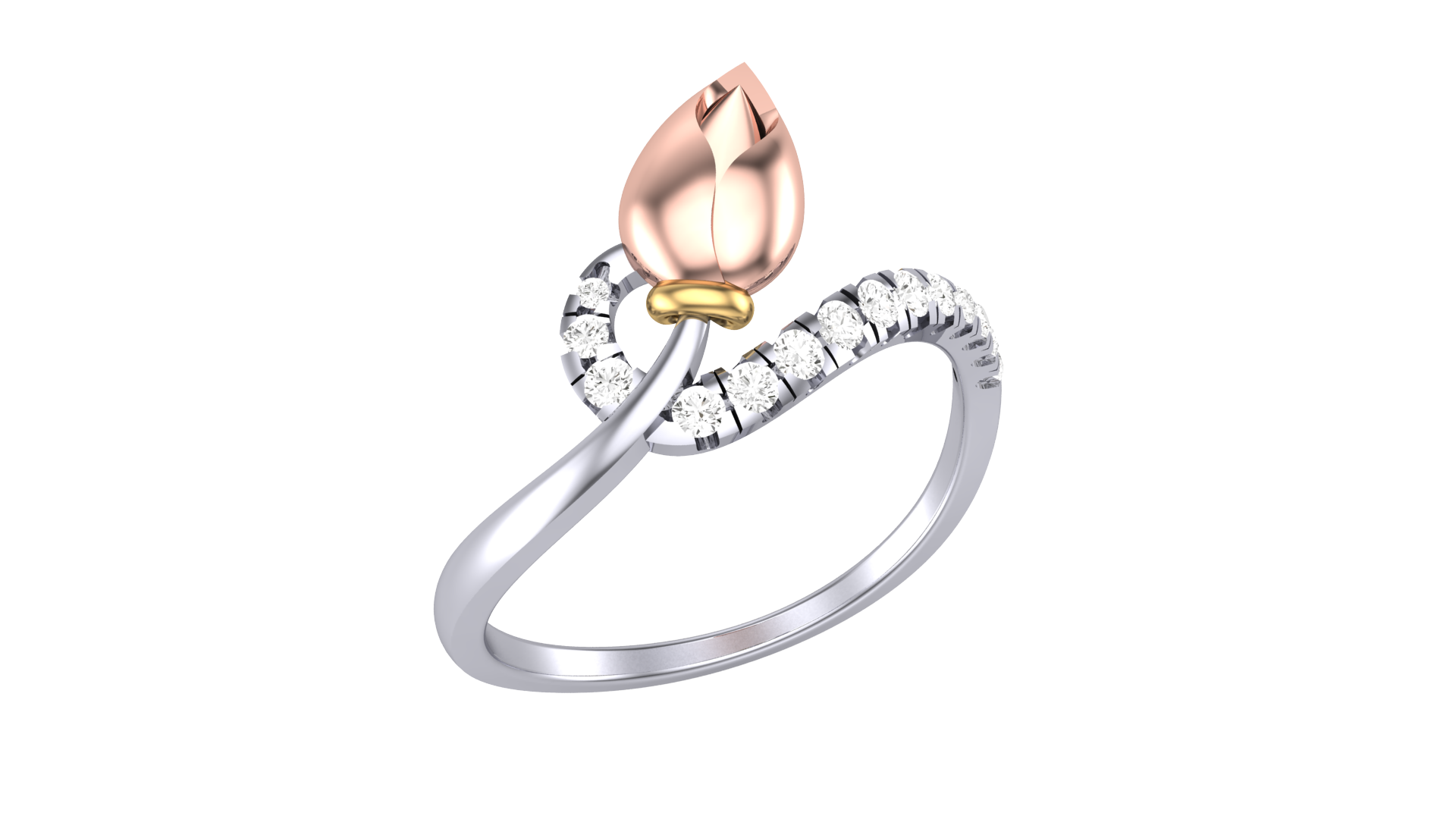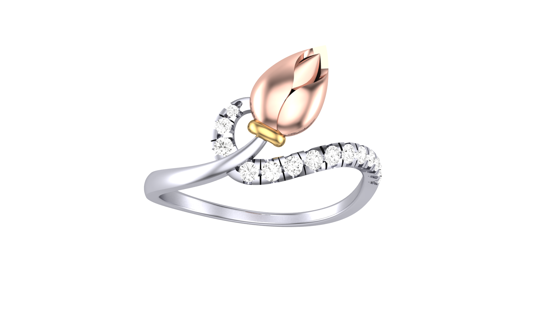 A celebration of botanical grace and modern artistry, this tri-tone ring is crafted from 1.97 grams of gold, seamlessly blending white, rose, and yellow tones.