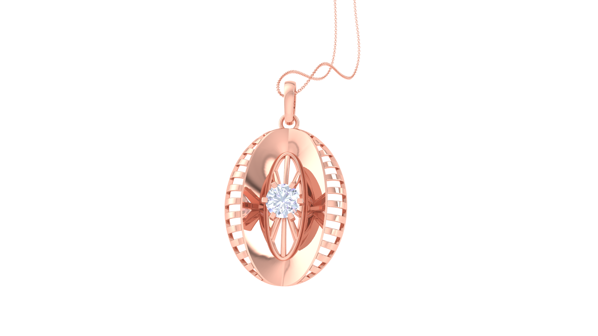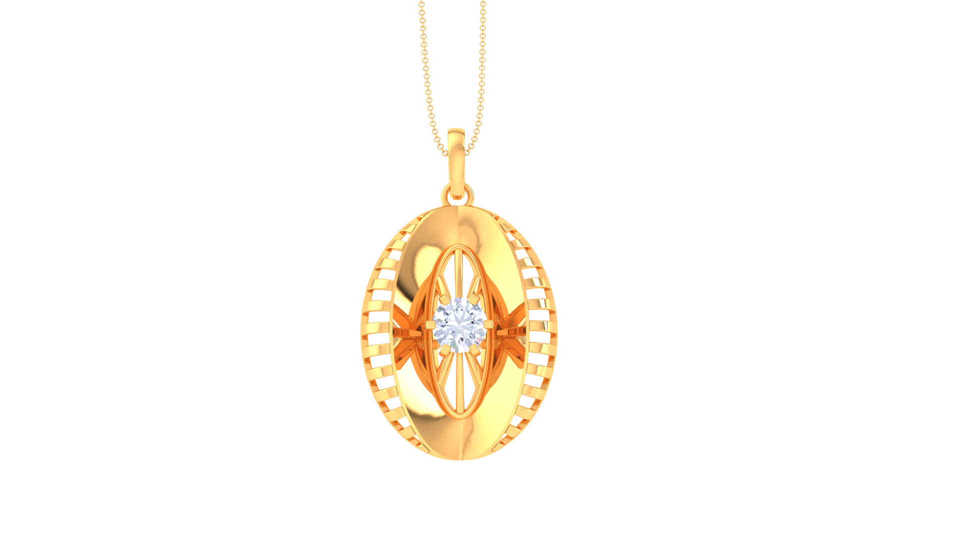 Art Deco Oval Pendant In Gold - 0.59 Ct Brilliant Cut Diamond