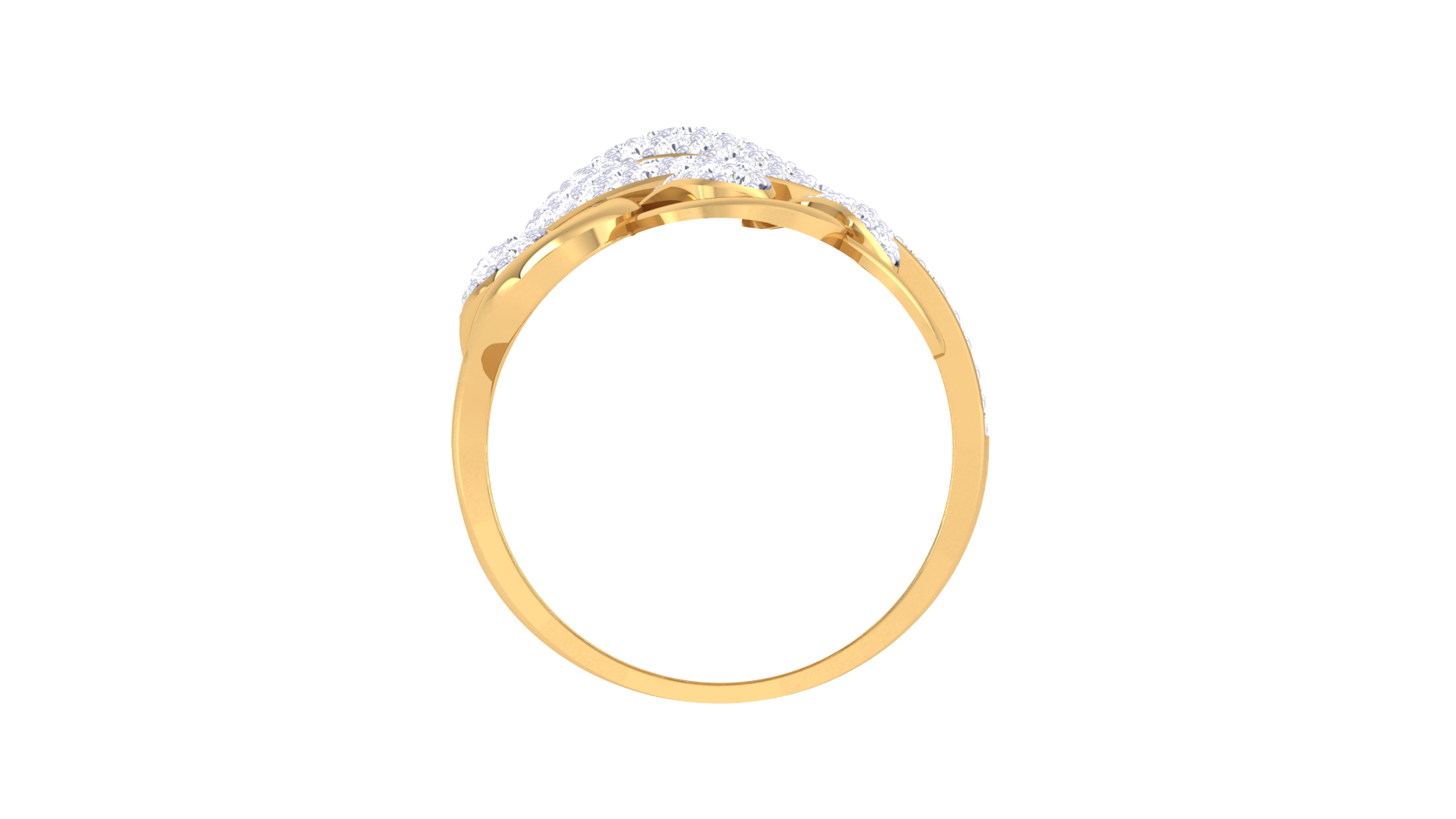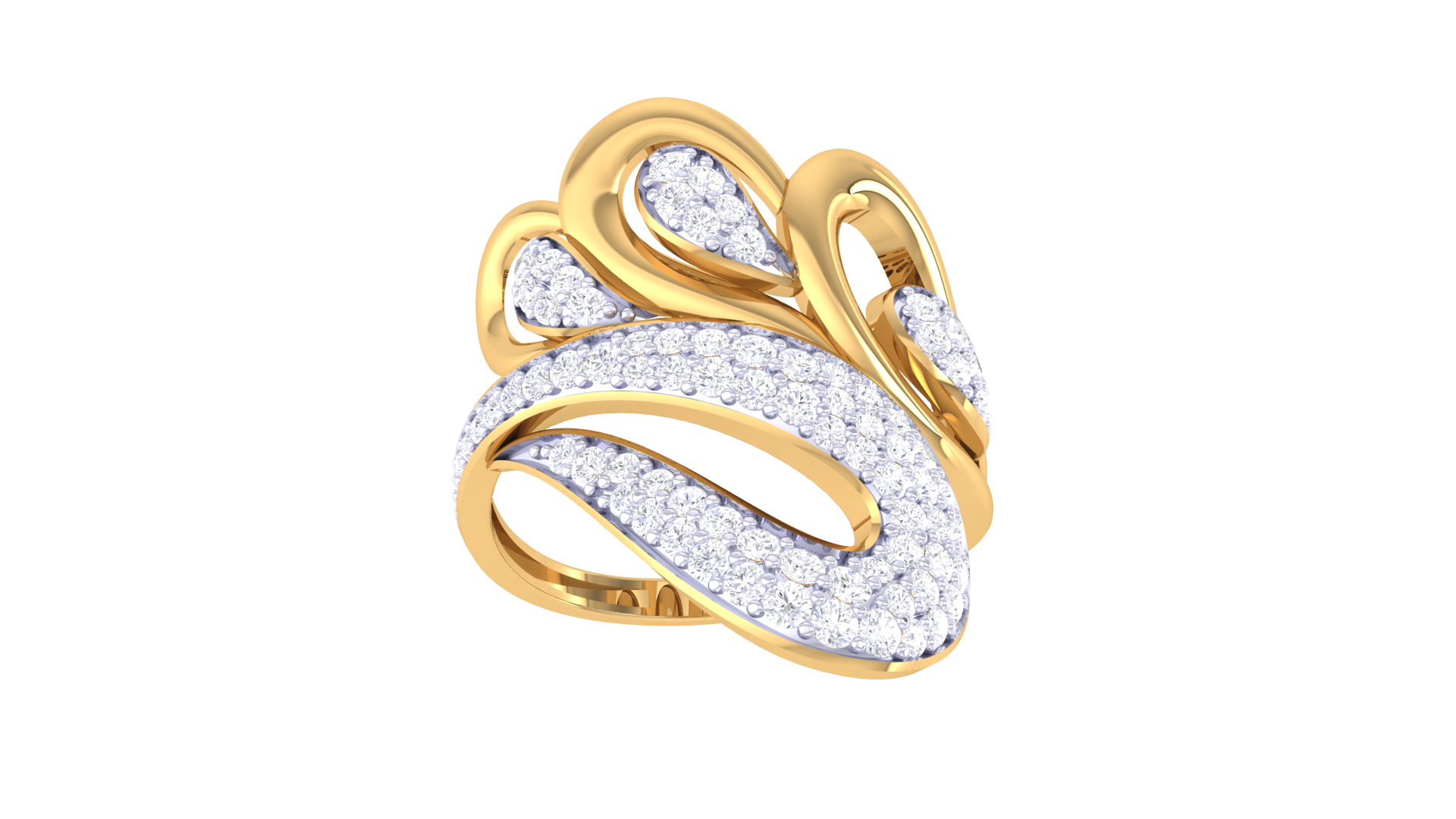 A symphony of curves and brilliance, this gold ring is a celebration of movement and light.