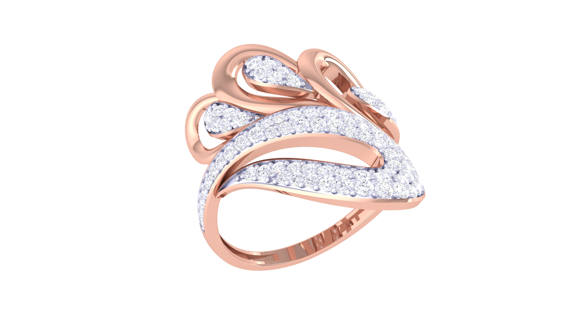 Along each curve, 0.55 carats of finely set diamonds shimmer like droplets in motion, adding depth and sparkle to the design.