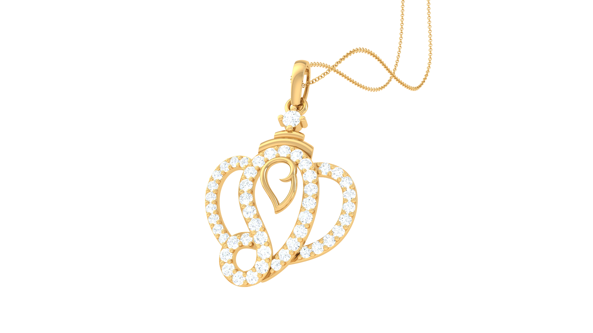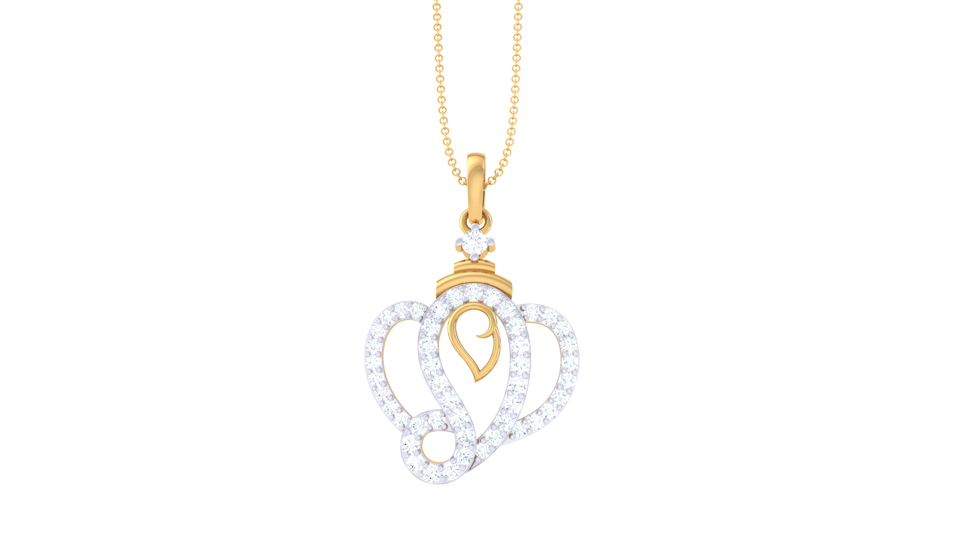 Celebrate timeless elegance with this intricately crafted pendant, featuring a stylized double-heart motif that radiates warmth and sophistication.