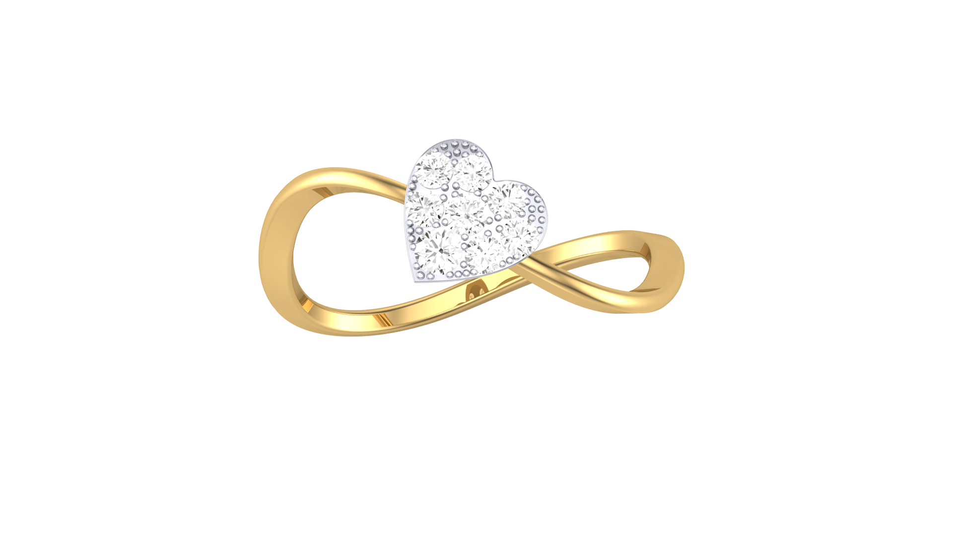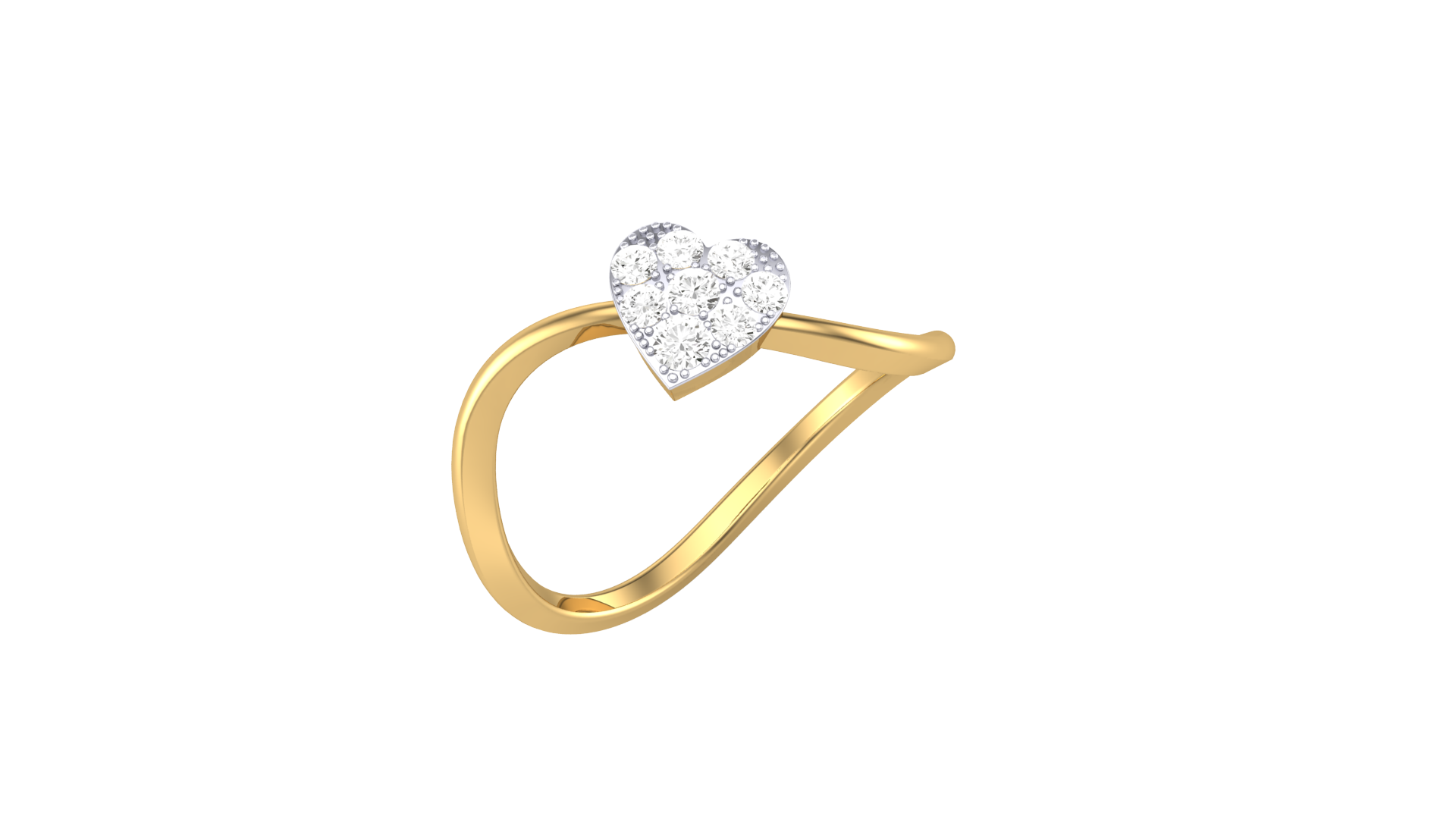 Its flowing band cradles a delicate heart-shaped centerpiece, adorned with 0.17 carats of shimmering diamonds that catch the light with every gesture.