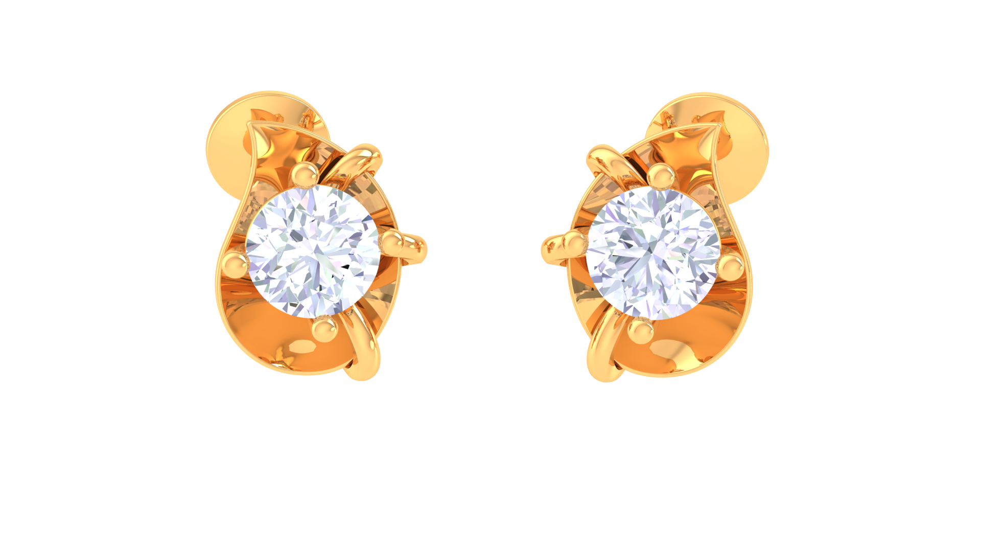 Gracefully designed to capture the essence of elegance, these stud earrings feature a round brilliant-cut diamond totaling 0.44 carats, cradled within a flowing teardrop-shaped gold setting.