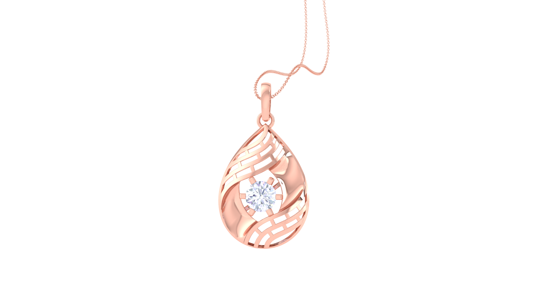 Lattice Teardrop Pendant In Rose Gold - 0.59 Ct Diamond In Center