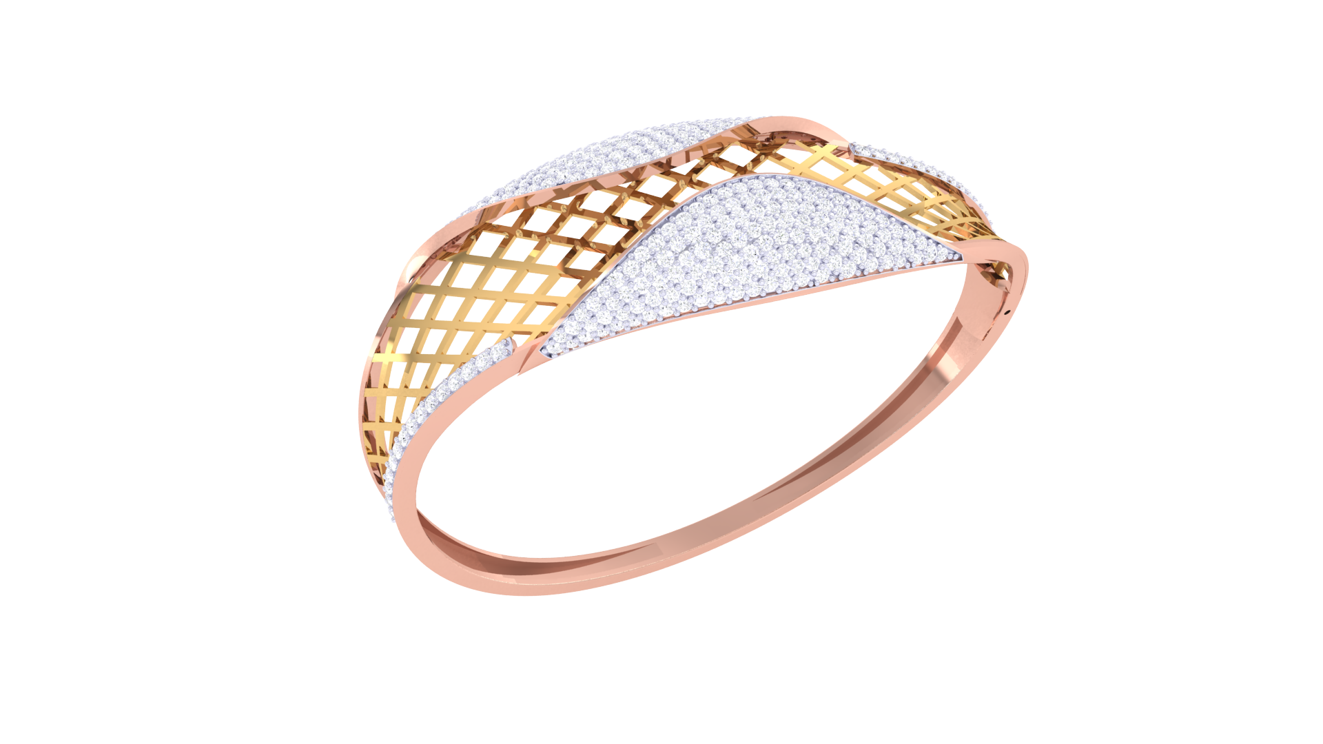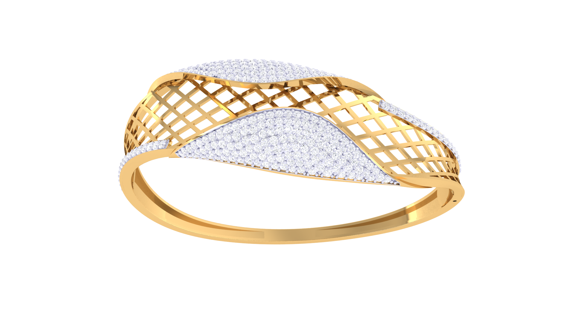 Curved Lattice Gold Bracelet - 2.12 Ct Dazzling Diamonds