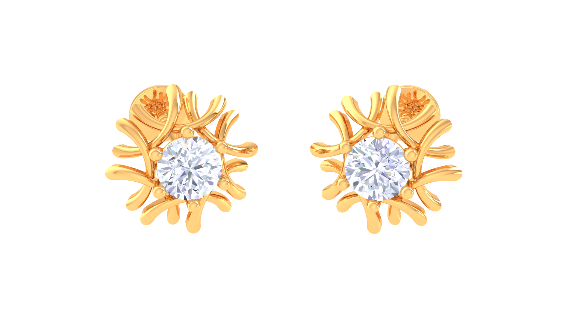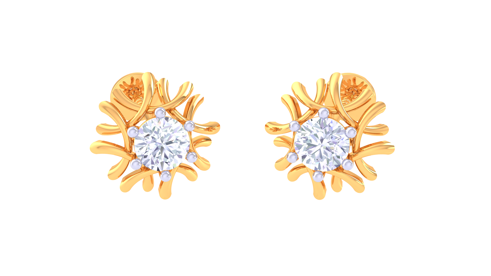 Delicate Bloom Studs Earrings With Diamond and Gold - 0.38 Ct
