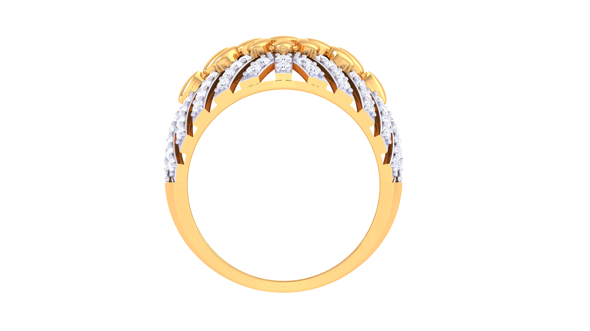 Expertly crafted in 5.68 grams of gold and adorned with 0.74 carats of diamonds, this ring is a statement of refined luxury—perfect for those who appreciate detail, symmetry, and enduring beauty.