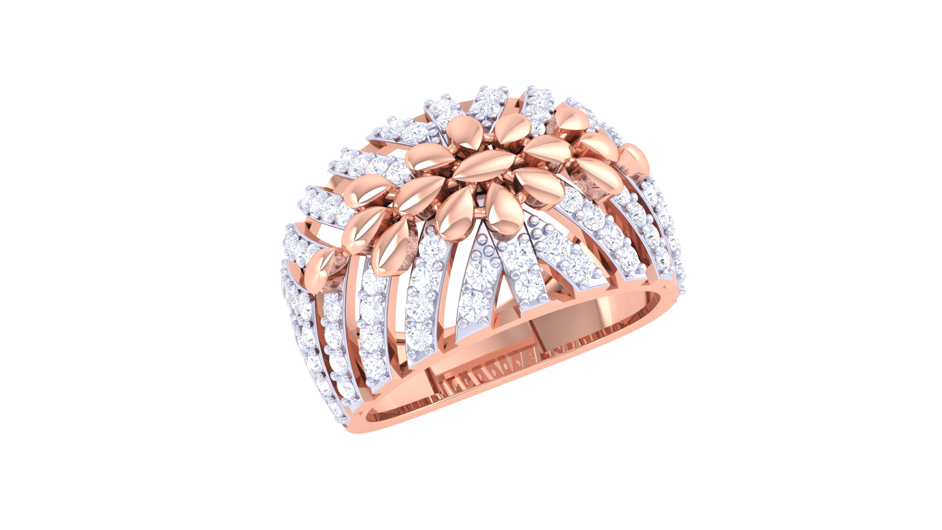 A celebration of intricate artistry and timeless elegance, the Lattice Bloom Diamond Ring brings together floral charm and architectural finesse.
