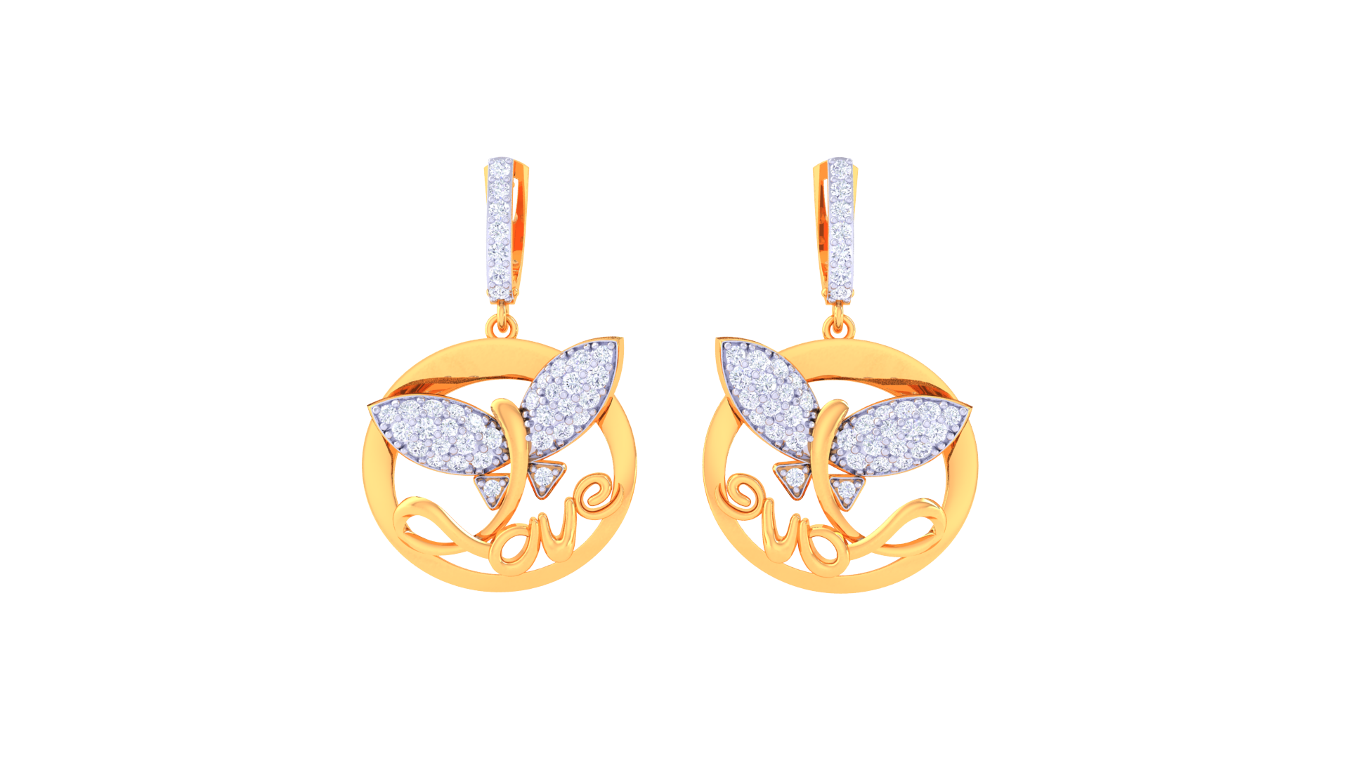 Crafted in 5.63 grams of gleaming gold, these earrings celebrate love and transformation through a delicate butterfly motif encircled by swirling accents.