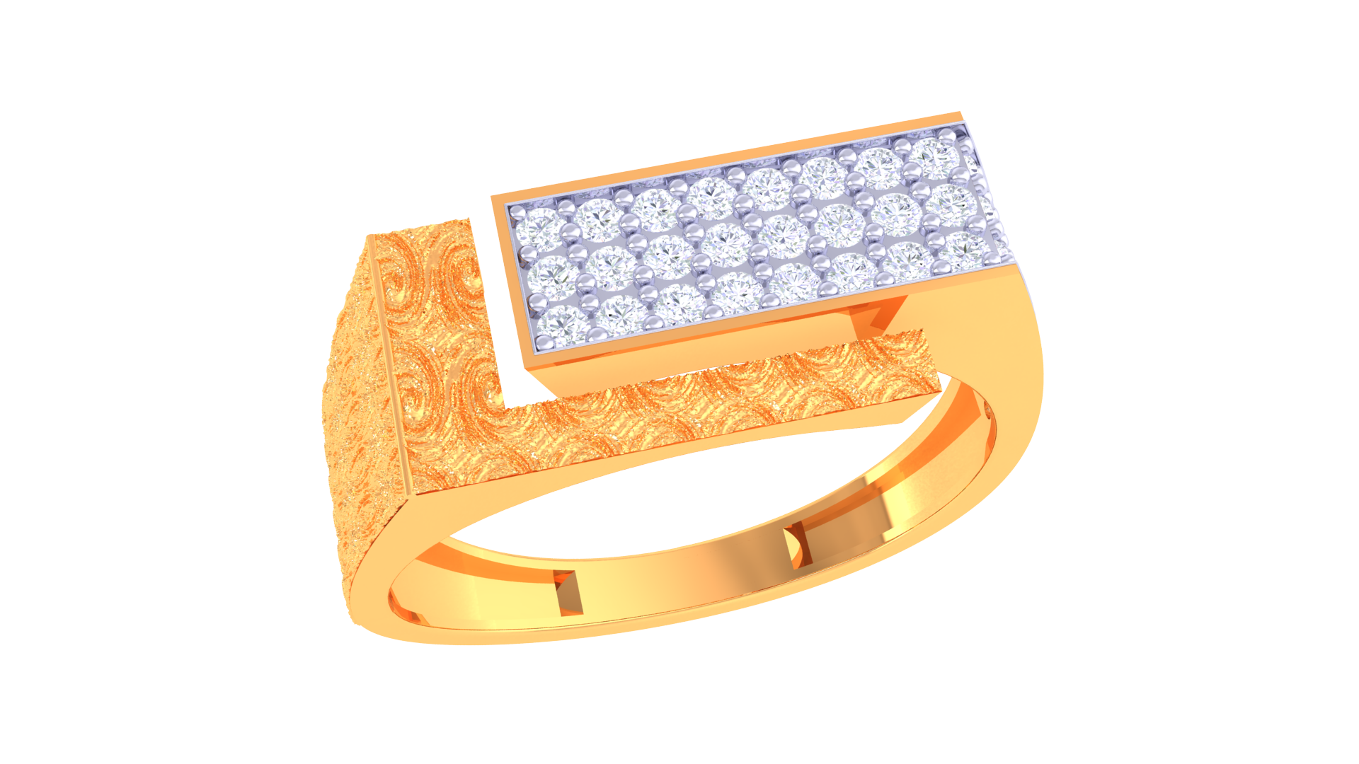 The Iconique Signature Band – 0.43ct Geometric Pavé Diamonds Ring features a bold rectangular pavé diamond panel set against intricate gold craftsmanship.
