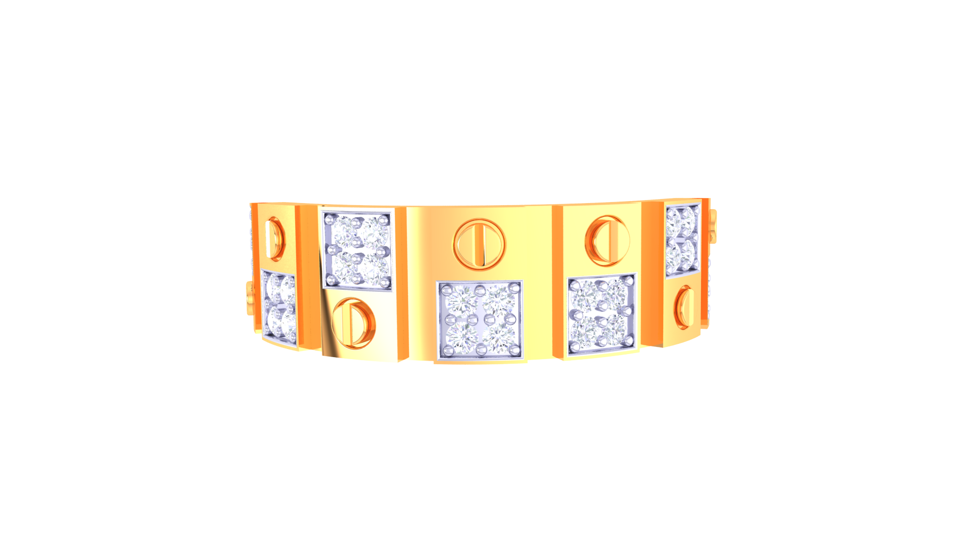 The Éclat Audace Moderne exudes bold, modern artistry with 0.28ct of square diamonds set in graphic gold panels, crafted from 3.53 grams of 18kt gold.