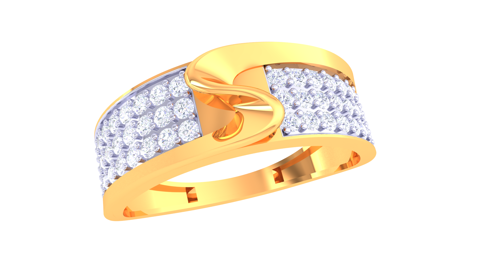The Lumière Svelte Allure features 0.65ct of round diamonds in crisp pavé sweeps, sculpted onto a sleek 18kt gold band weighing 3.84 grams.