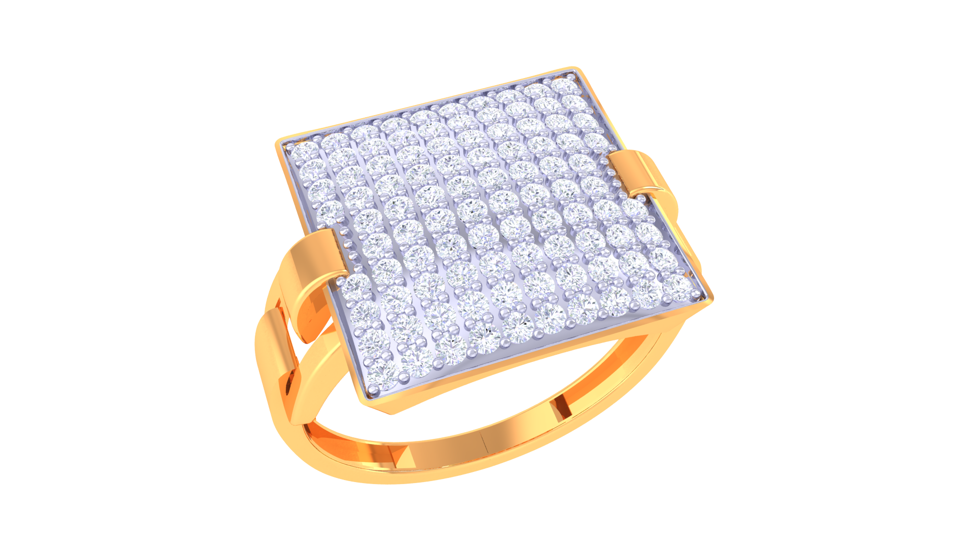 The Éclat Carreau Audacieux commands instant attention with its dramatic square top, shimmering with 0.79ct of round pavé diamonds, perfectly balanced on a 5.02 gram band of 18kt gold.