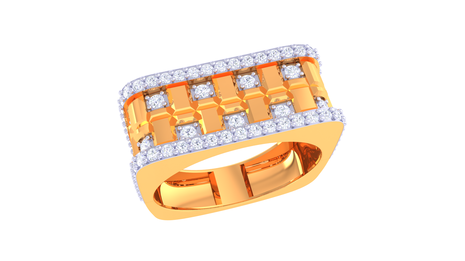 Éclat Royal Blocks Gold Ring – 0.7 Ct Dazzling Pave Diamonds