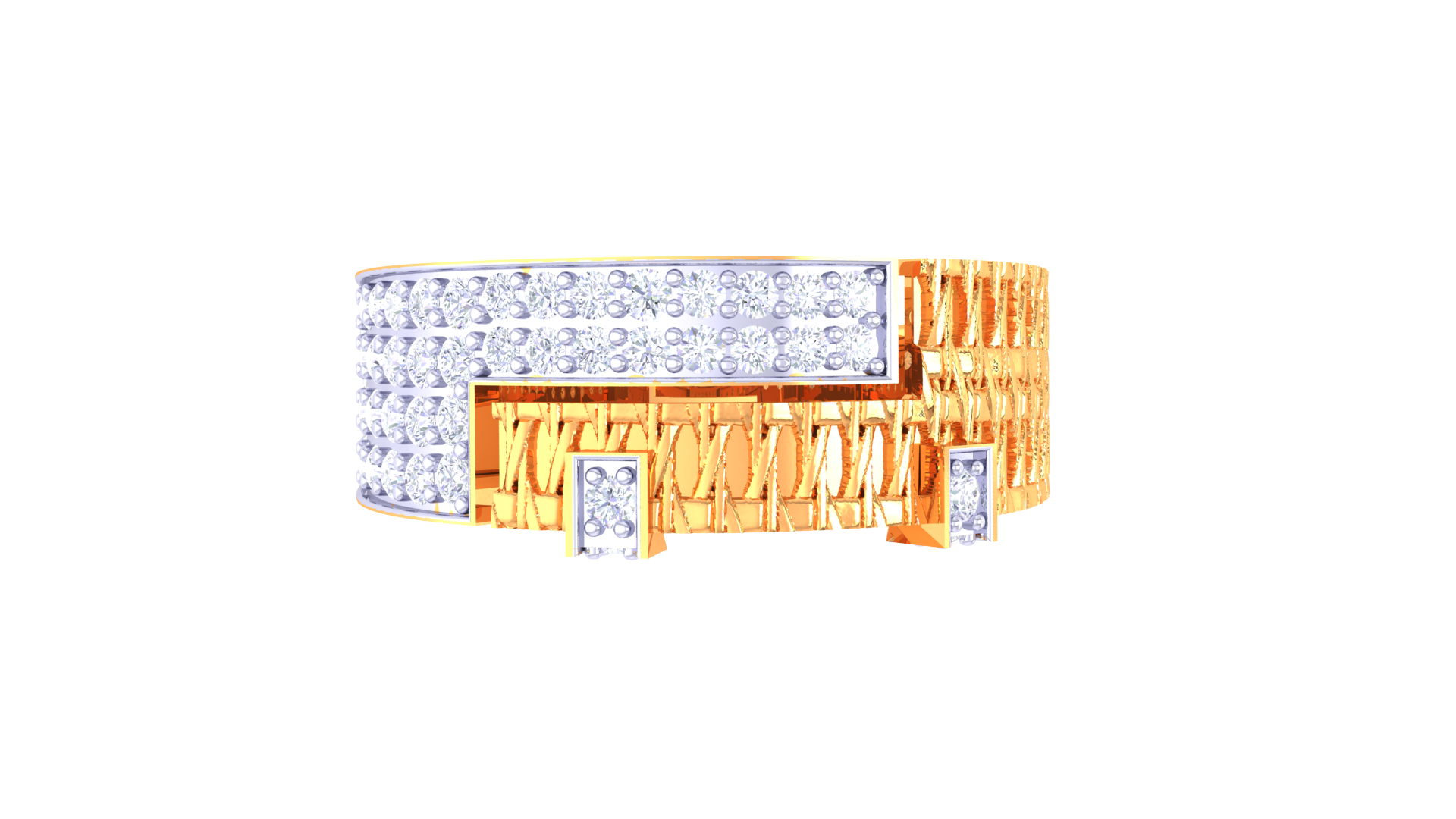 The Lumière Métropole is crafted in 2.85 grams of 18kt gold, highlighted by a bold, offset band of 0.47ct round pavé diamonds that gleam with metropolitan flair.