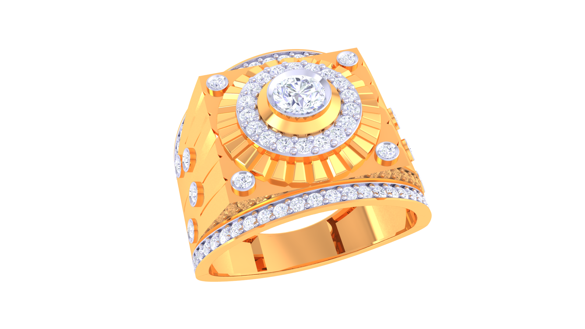 Éclat Sunbrust Halo Rayonne Gold Ring – 0.7 Ct Radiant Diamond