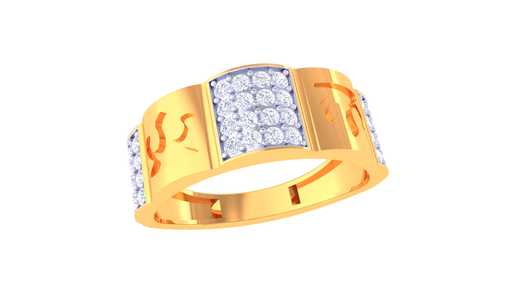 Crafted in 18K gold weighing 3.92 grams, the Iconique Radiant Crest – 0.5ct Diamond Gold Ring features a luminous cluster of diamonds and elegant engraved patterns.