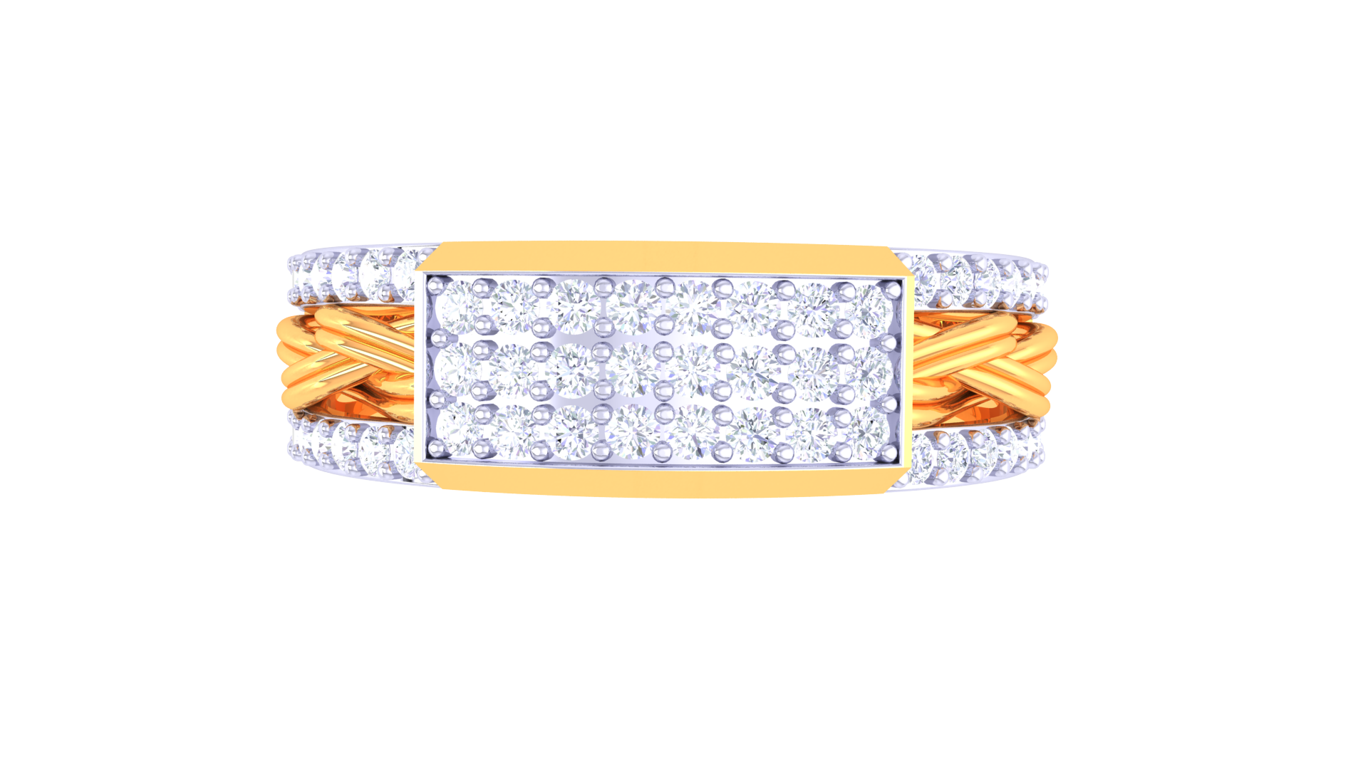A luminous pavé of 0.46ct diamonds shimmers at the center, framed by sculpted golden weave accents for a bold yet refined look. Crafted in 18K gold weighing 4.23 grams, the Lumière Gilded Weave combines radiant shine and textured gold artistry in a distinctly modern gold ring.