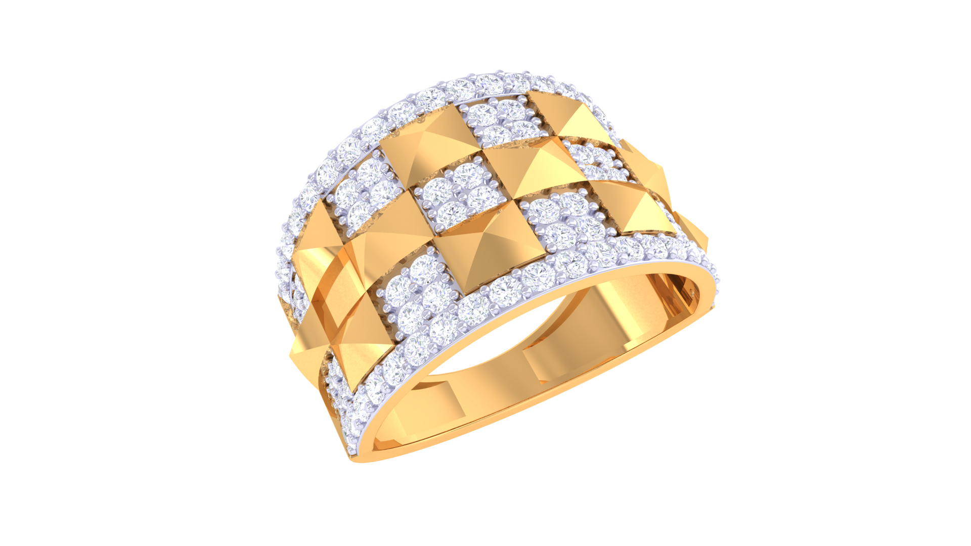 Trilune Grille Céleste – 0.99 Ct Round Diamond Gold Ring
