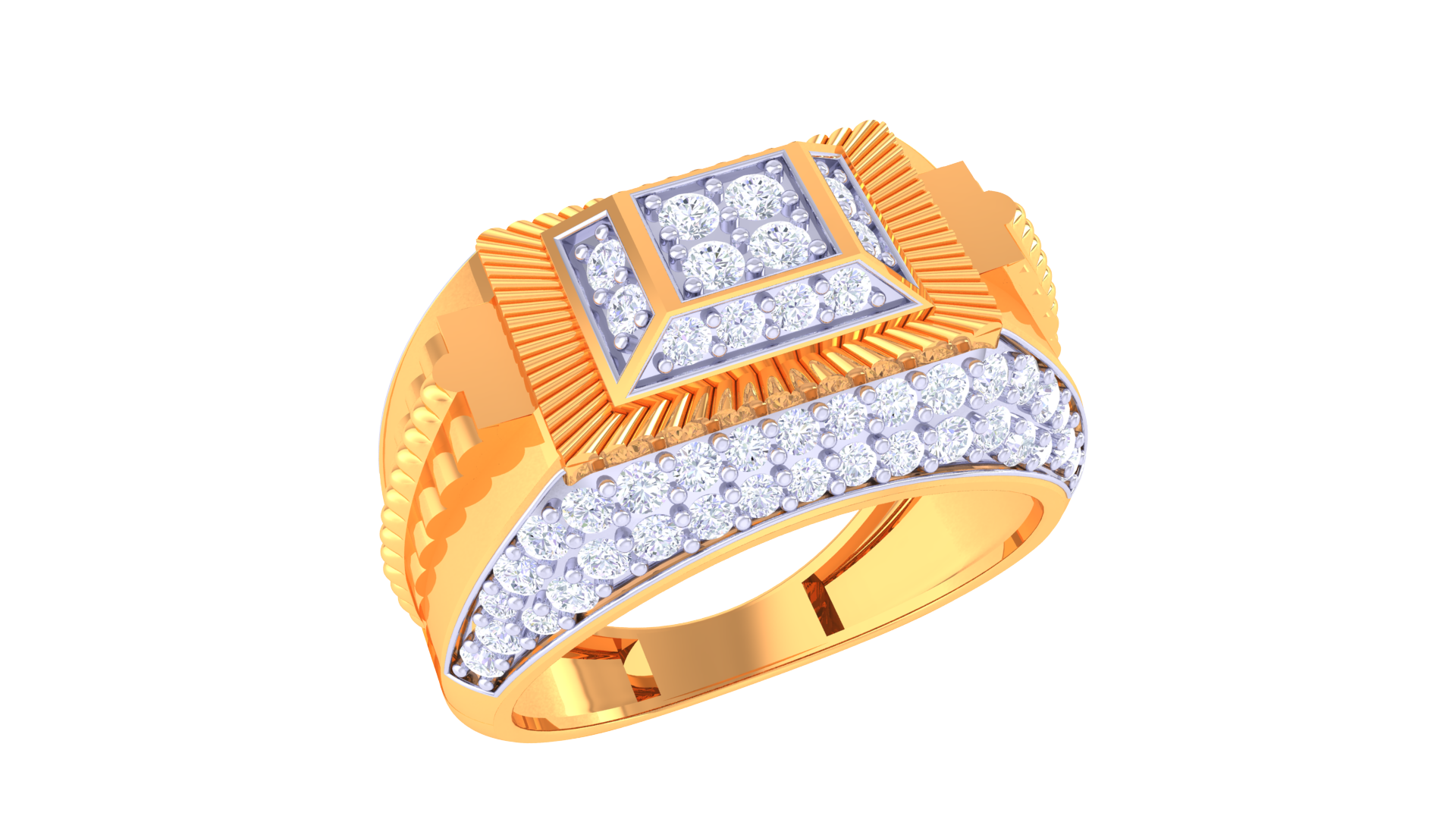 The Éclat Miroir Noble captivates with multi-layered geometry and a mirror-like face, crafted in 5.94 grams of 18kt gold and dazzling with 0.89ct of round pavé diamonds.