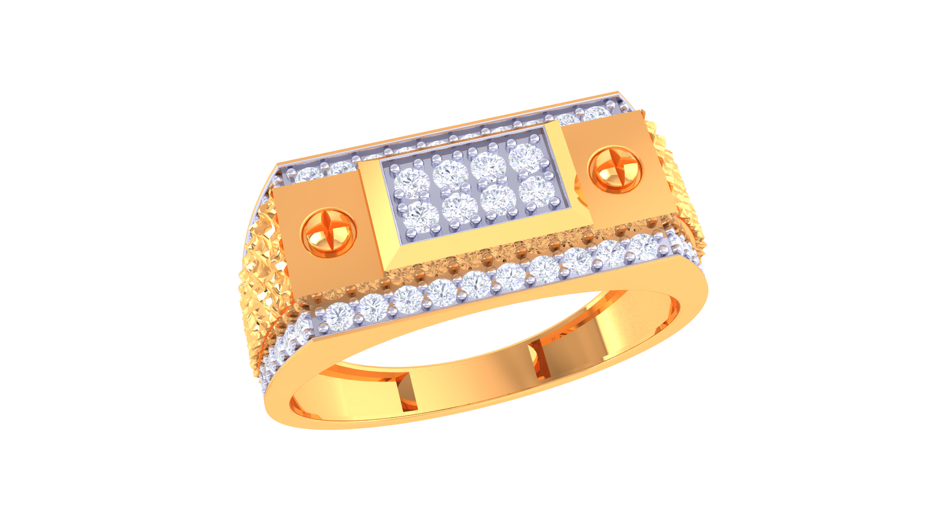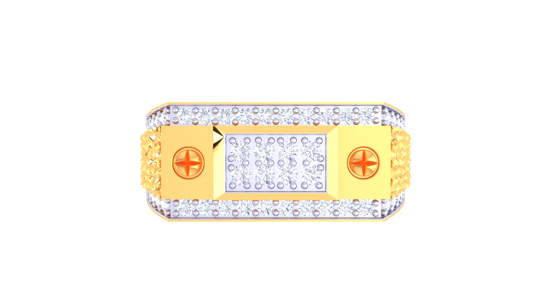 The Éclat Orbite Moderne features 0.52ct of round pavé diamonds in a bold rectangular design, crafted from 4.23 grams of 18kt gold and accented with unique gold screw motifs.
