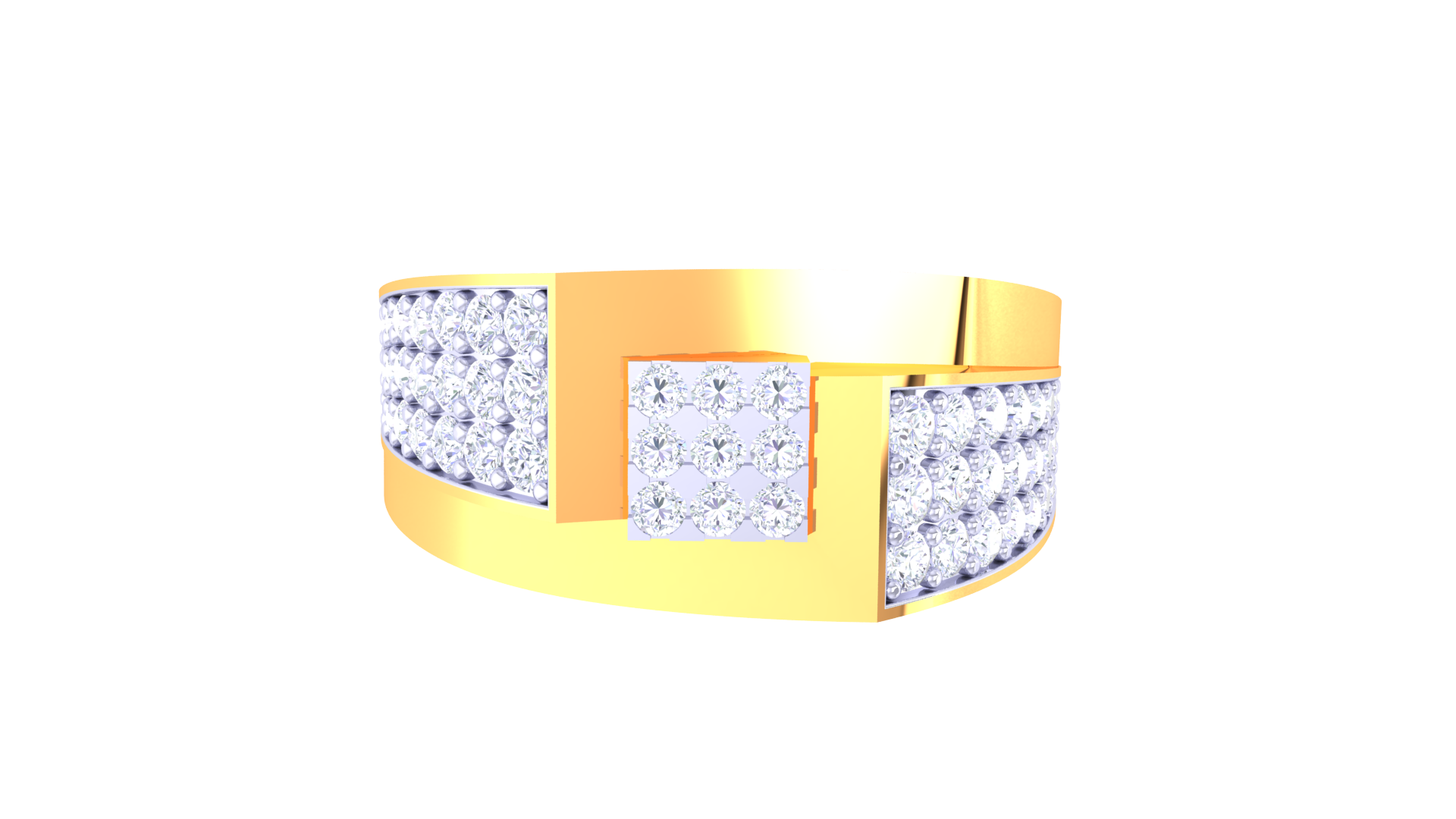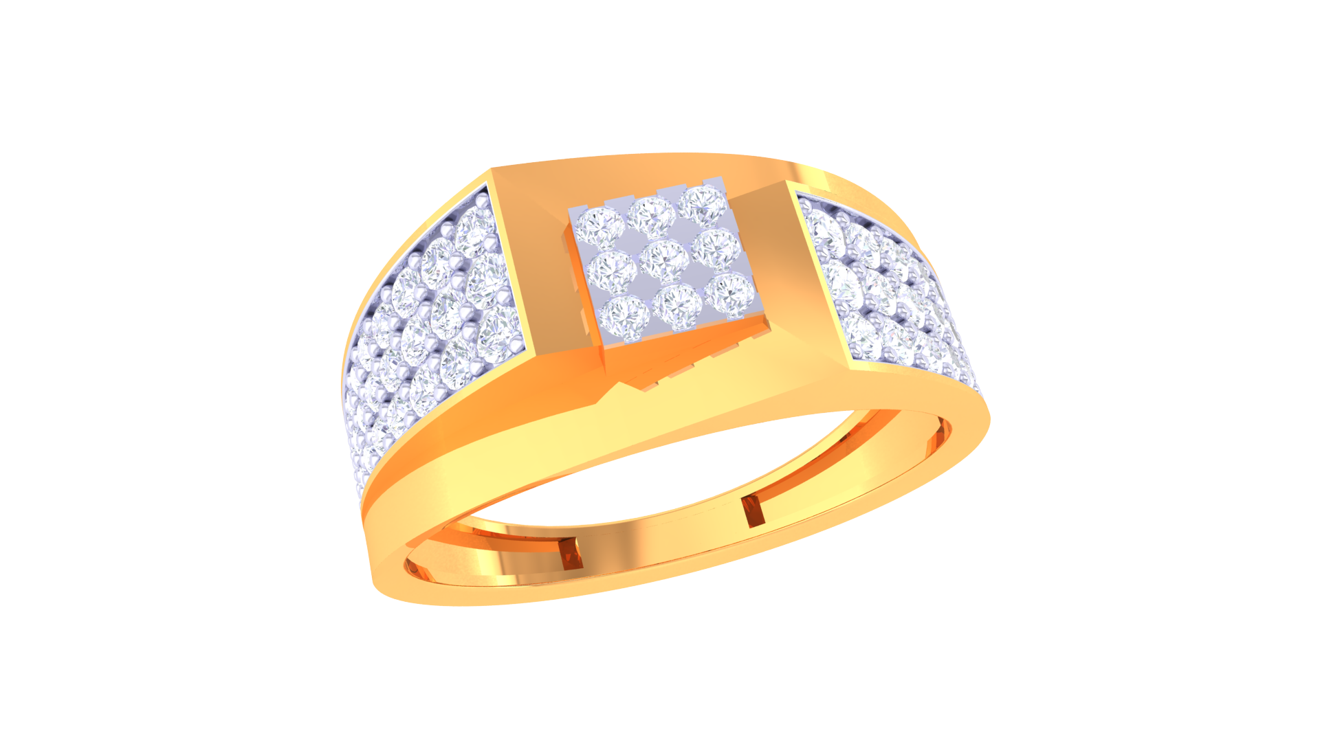 The Iconique Signature Gold Ring showcases a stunning 0.9ct arrangement of princess and round diamonds set in 4.12 grams of exquisite gold.