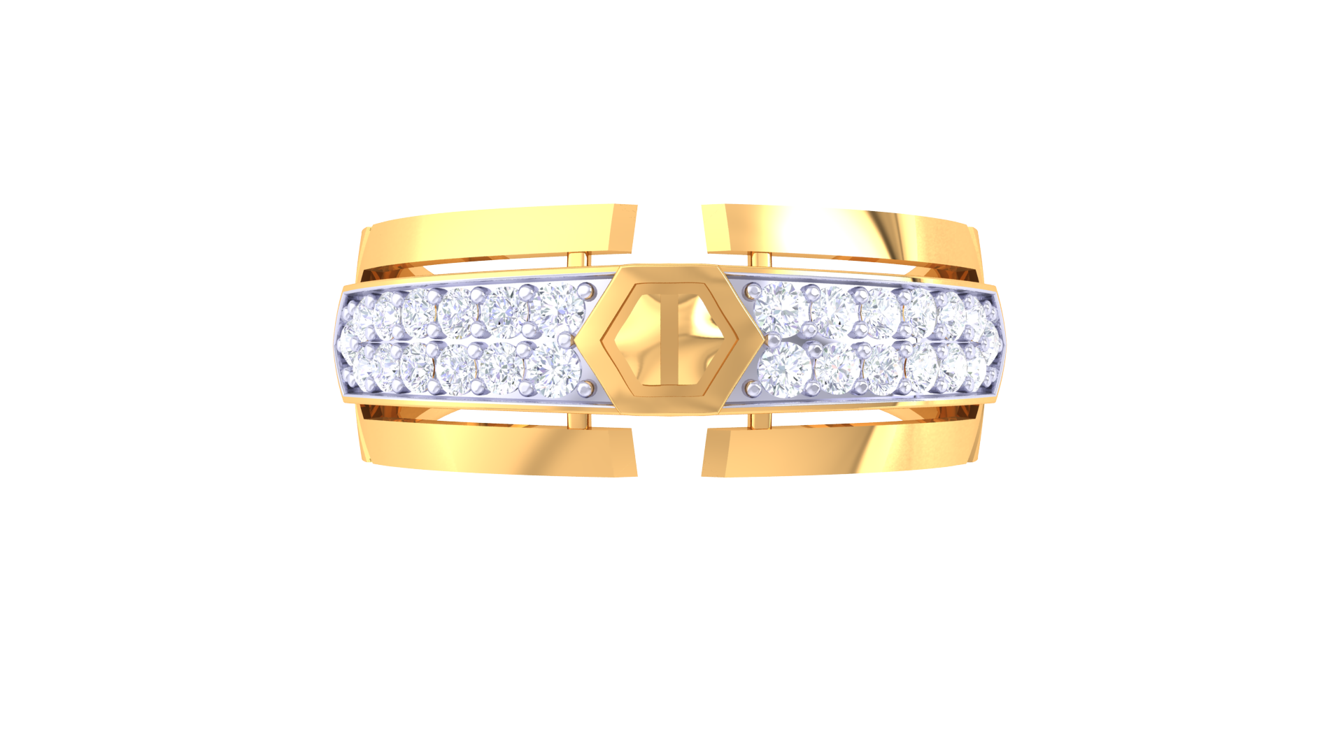 Sculpted in 5.23 grams of 18kt gold, the Lumière Hexa Lumi ring features a bold hexagonal motif framed by radiant pavé rows. With 0.33ct of round brilliant diamonds adding shimmer, this piece brings modern geometry and light-play to a classic silhouette.