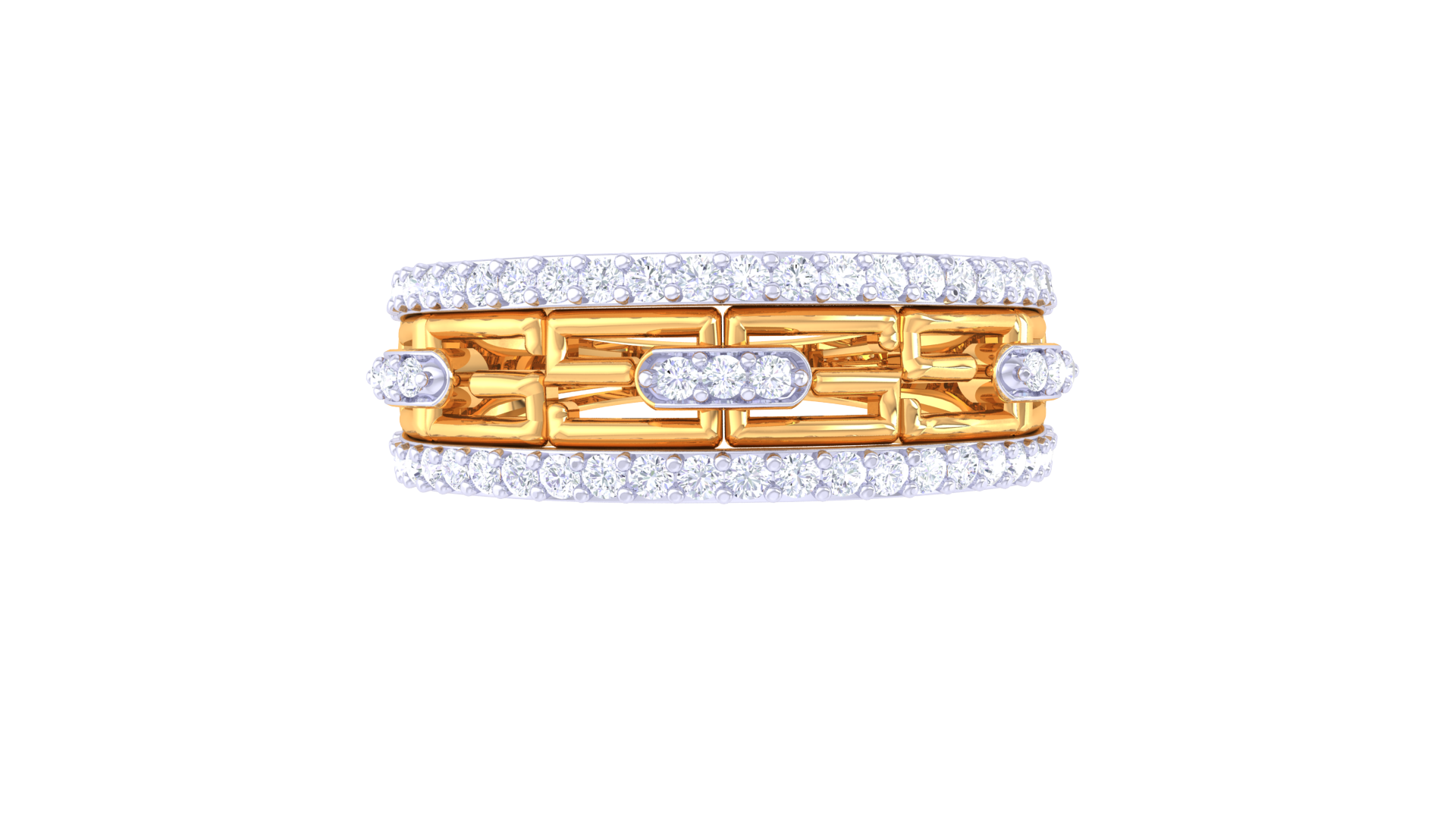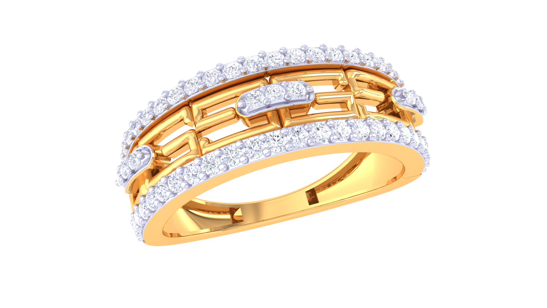 Crafted from 5 grams of 18kt gold, the Lumière Pavois Baguette ring features an architectural openwork band, anchored by a central baguette-cut diamond and framed by pavé rows of round diamonds for a total of 0.45ct. Its luminous design celebrates the interplay of light, refined geometry, and contemporary elegance.