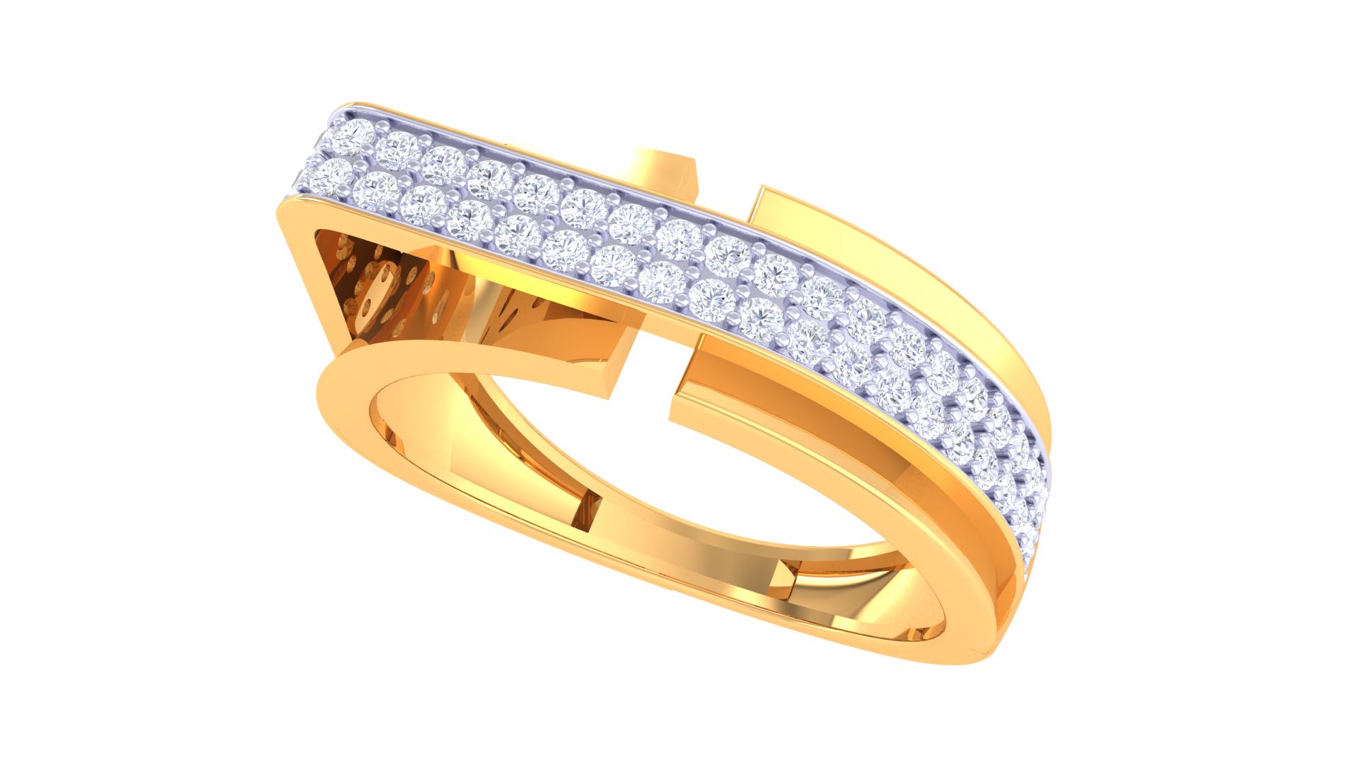 Crafted from 6.14 grams of 18kt gold, the Iconique Ligne Pure ring features a crisp central split and a precise pavé strip of round diamonds totaling 0.38ct. Its sleek, linear silhouette embodies iconic minimalism and modern refinement for everyday luxury.