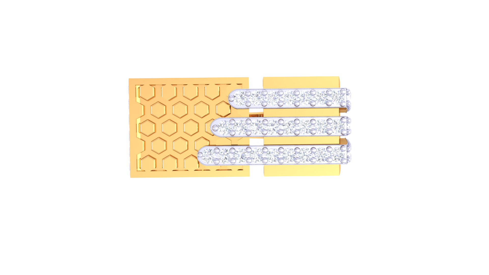 Designed with architectural flair, the Éclat Hexaline Moderne features 6.74 grams of 18kt gold and a trio of linear pavé diamond bars (0.6ct, round) set beside a bold honeycomb-textured surface. This striking composition balances geometric precision and shimmering artistry for an unmistakably modern statement.