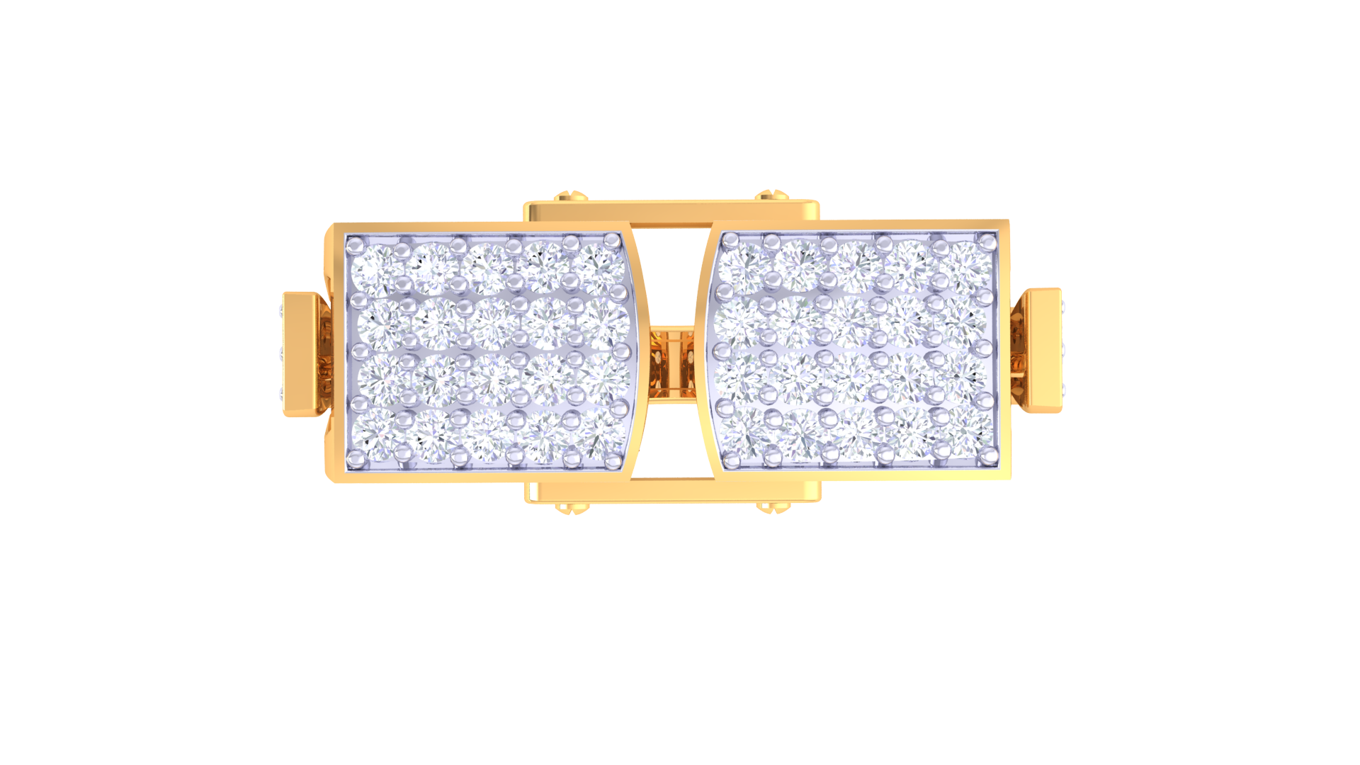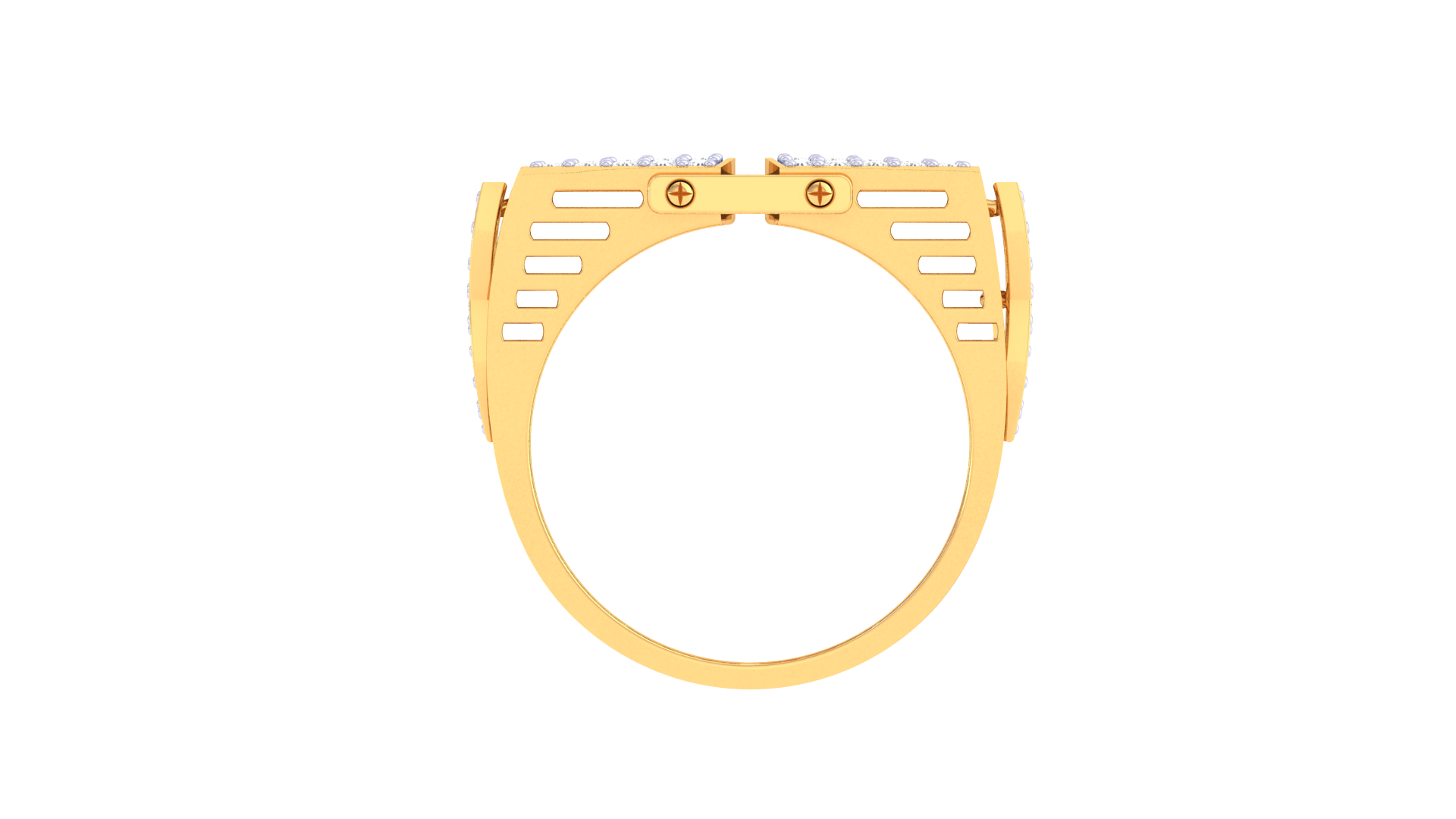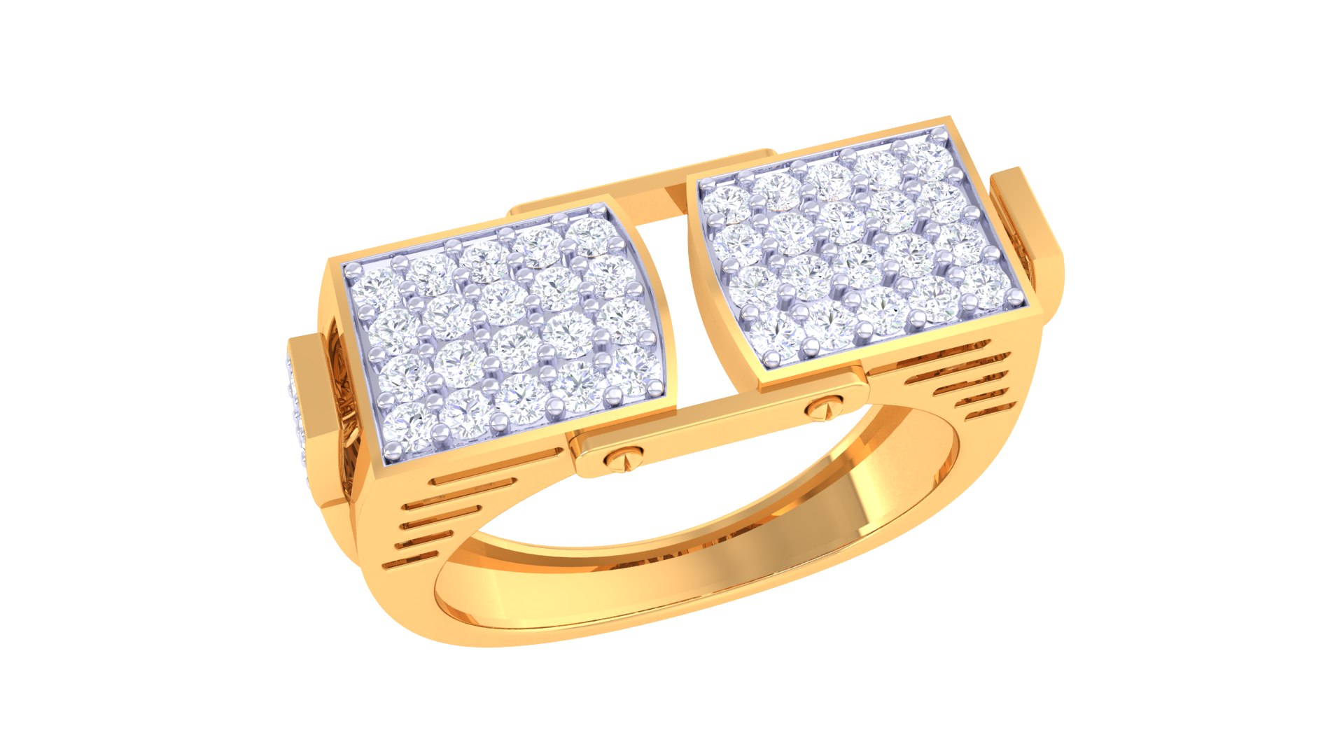 Éclat Gemini Forme is forged in 7.46 grams of 18kt gold, showcasing 0.71ct of brilliant round diamonds encrusted across twin geometric surfaces. This striking, architectural ring brings modern symmetry and bold contrast to a statement design for those who favor artistic distinction.