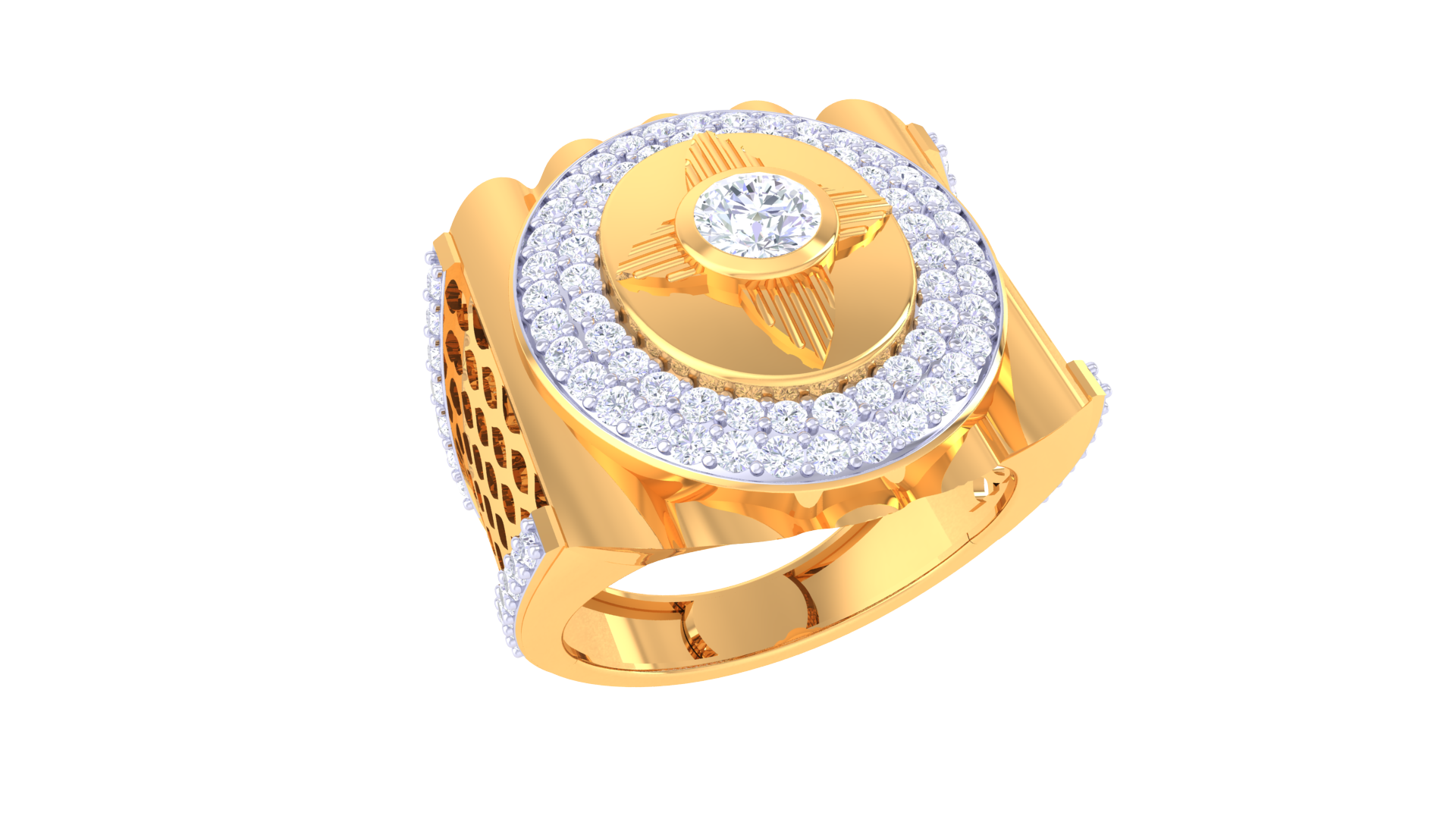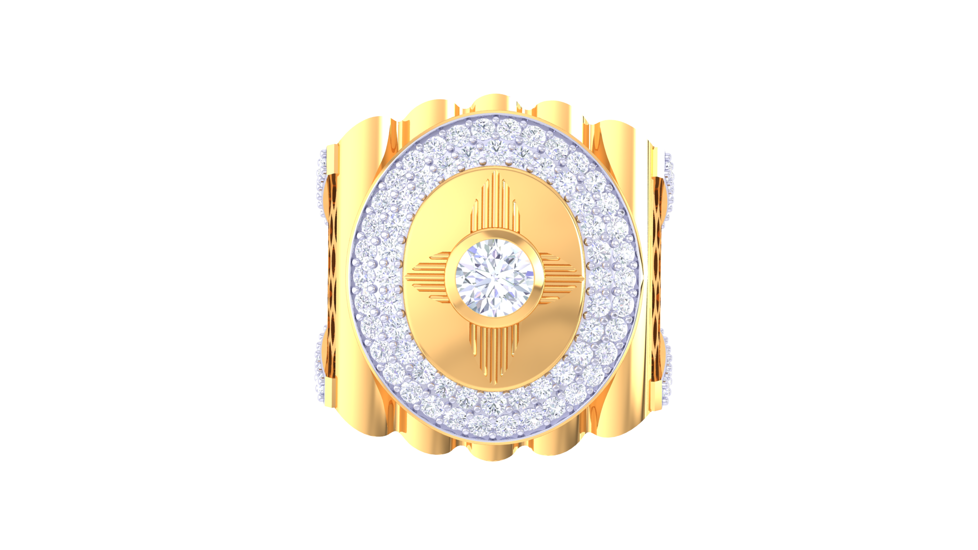 Lumière Orbital Radiance – 1.25ct Diamond Gold Ring celebrates brilliance with a round diamond centerpiece encircled by glowing pavé accents and a sculpted gold band. Its bold orbital pattern and impressive 18kt gold weight offer a modern interpretation of radiance, making it perfect for those seeking standout luxury.