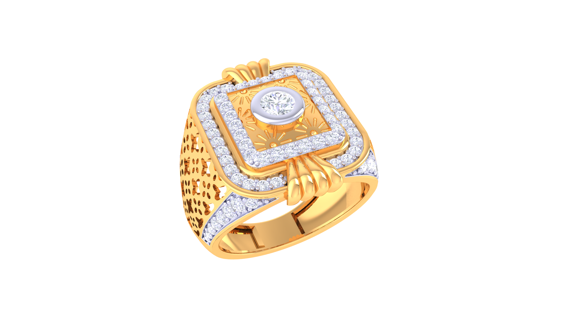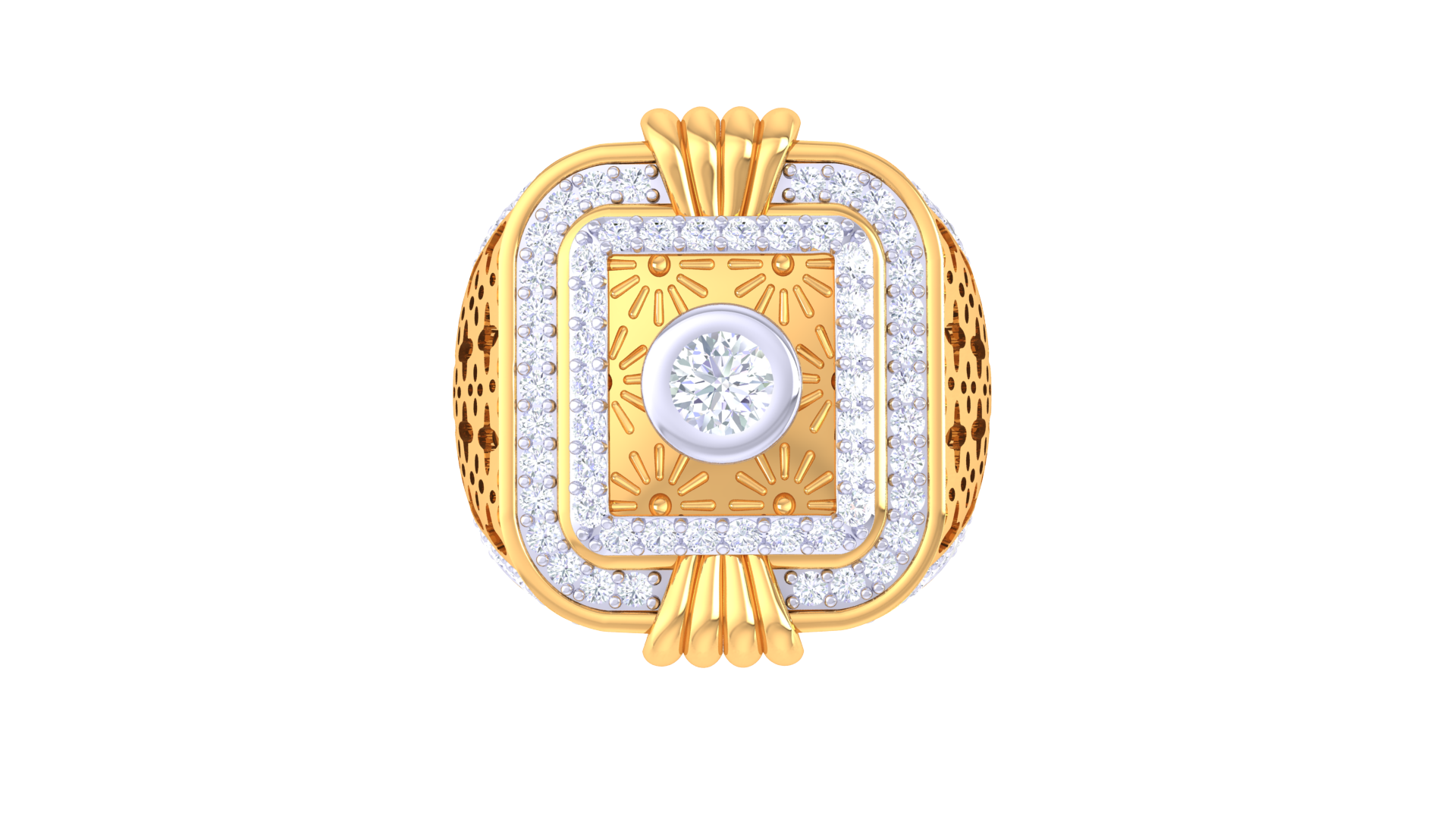 Iconique Carreau Signature – 1.11ct Diamond Gold Ring displays a round brilliant diamond at its center, encased in a striking square silhouette and surrounded by finely detailed 18K goldwork of 9.76 grams. The floral engravings and geometric symmetry blend iconic artistry with everyday luxury, creating a piece that radiates purity and timeless sophistication.
