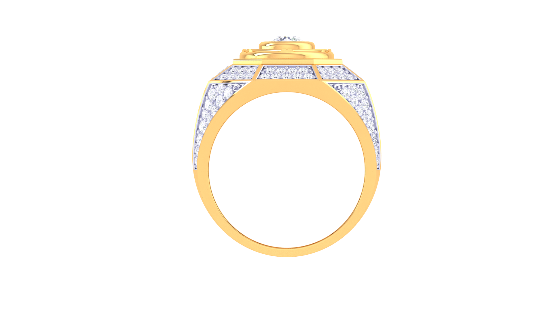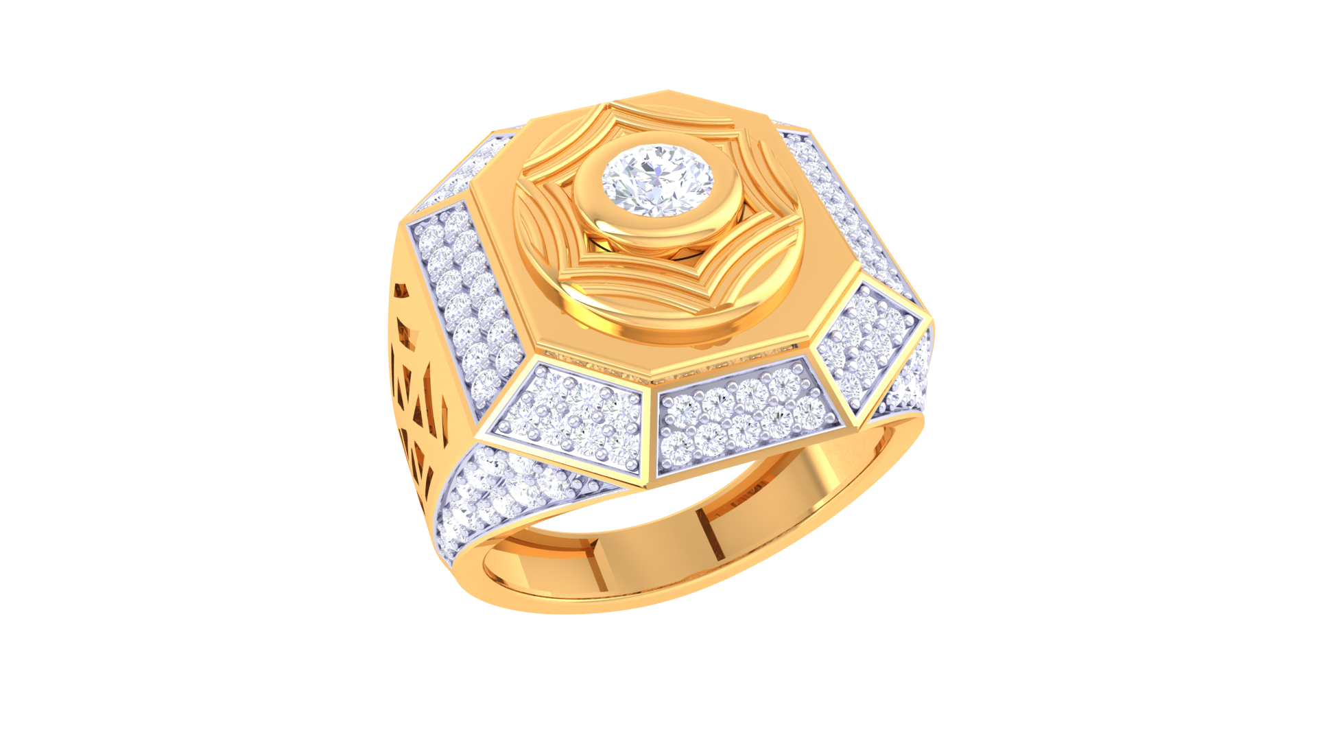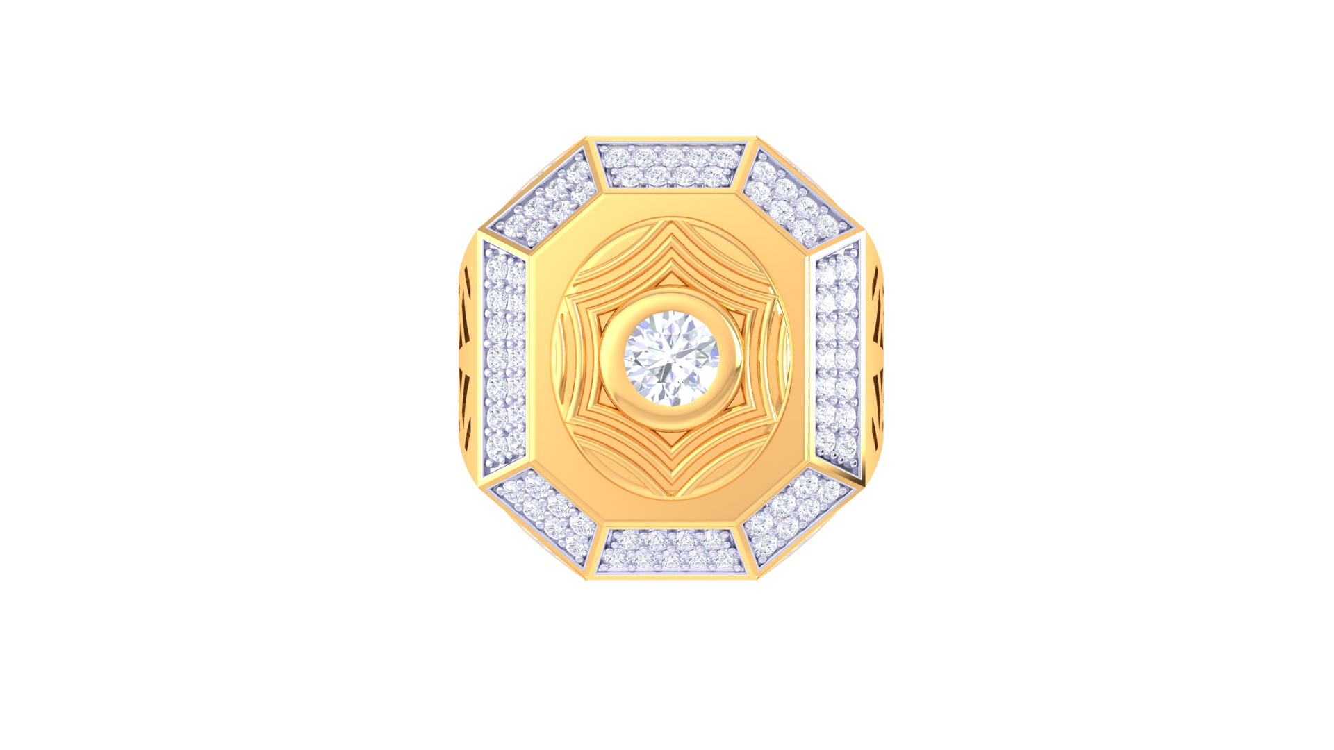 Iconique Octave Prestige – 1.29ct Diamond Gold Ring presents an exquisite round brilliant diamond at its heart, framed by bold octagonal symmetry in 18K gold weighing 12.01 grams. Subtle geometric engravings and accent diamonds along the edges infuse timeless elegance and refined luxury into this iconic masterpiece.