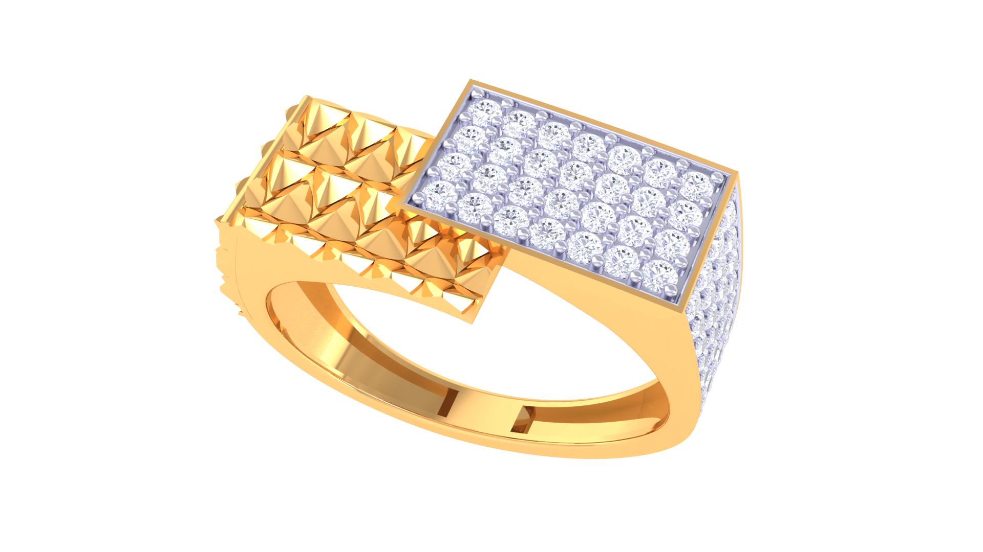 Sculpted from 5.85 grams of 18kt gold, the Éclat Parallèle Moderne ring pairs a textured golden rectangle with a striking pavé-set panel showcasing 0.5ct of round brilliant diamonds. Its inventive geometry and interplay of light and dimension express contemporary artistry in every glance.